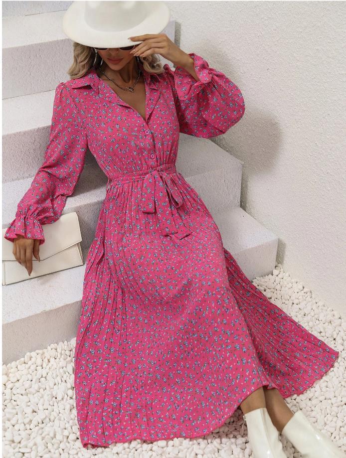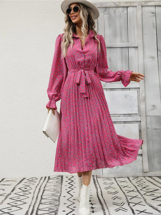 2025년 가을 겨울 신상품, 알리익스프레스 및 아마존 여성 패션, 끈이 달린 주름 긴팔 드레스