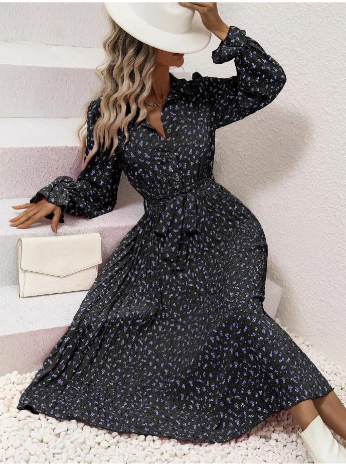 2025년 가을 겨울 신상품, 알리익스프레스 및 아마존 여성 패션, 끈이 달린 주름 긴팔 드레스스토어 가기