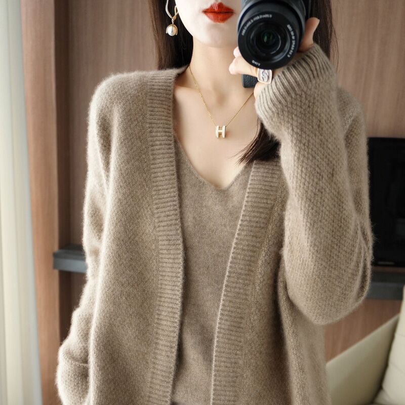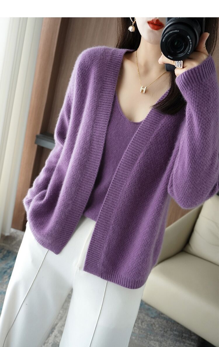 가을과 겨울 새로운 여성의 V-넥 캐미솔 + 두꺼운 코트 카디건 세트 베이스 스웨터스토어 가기