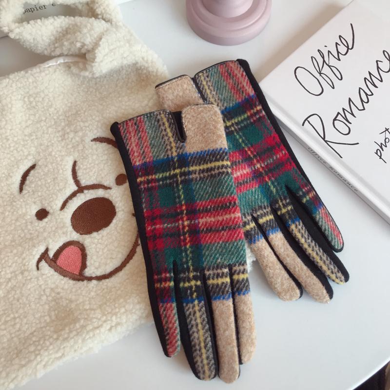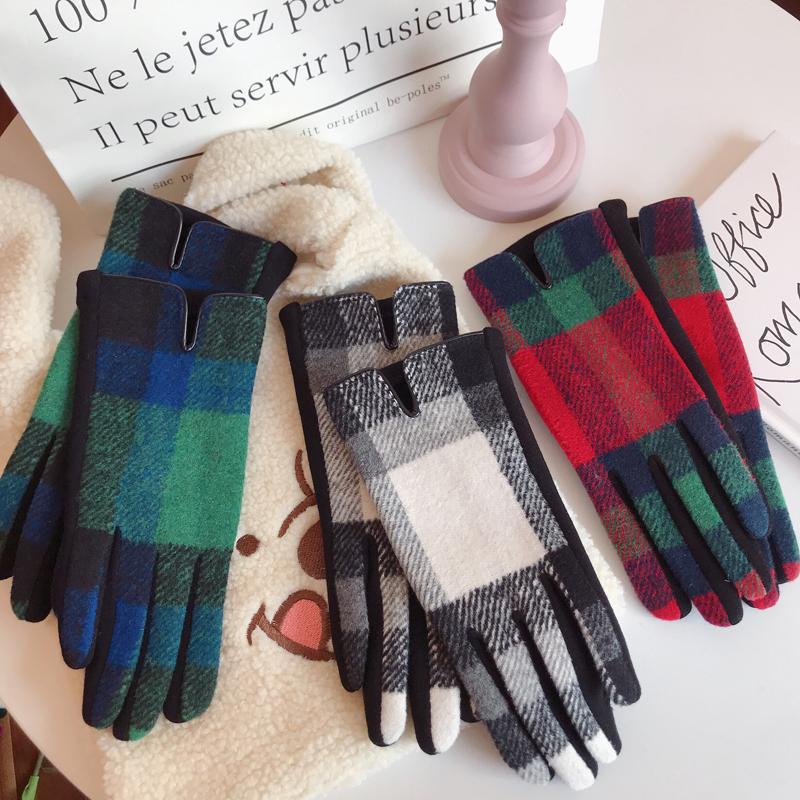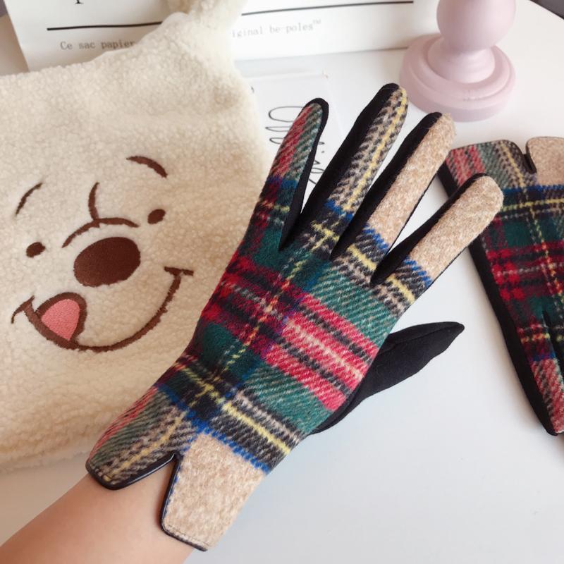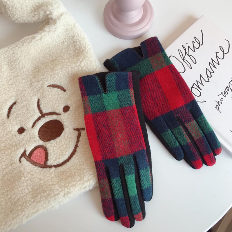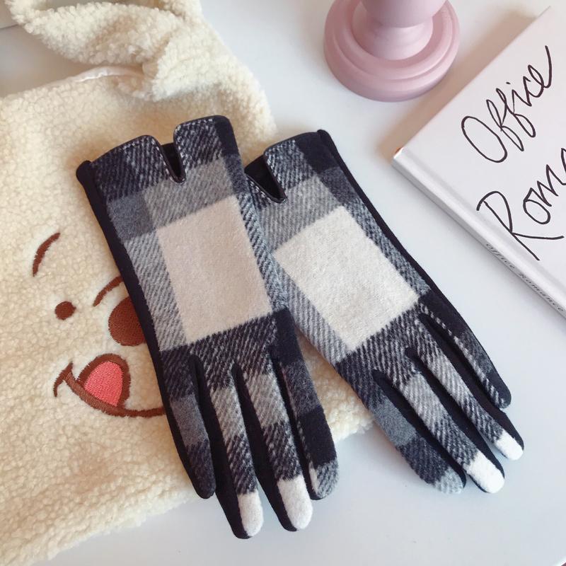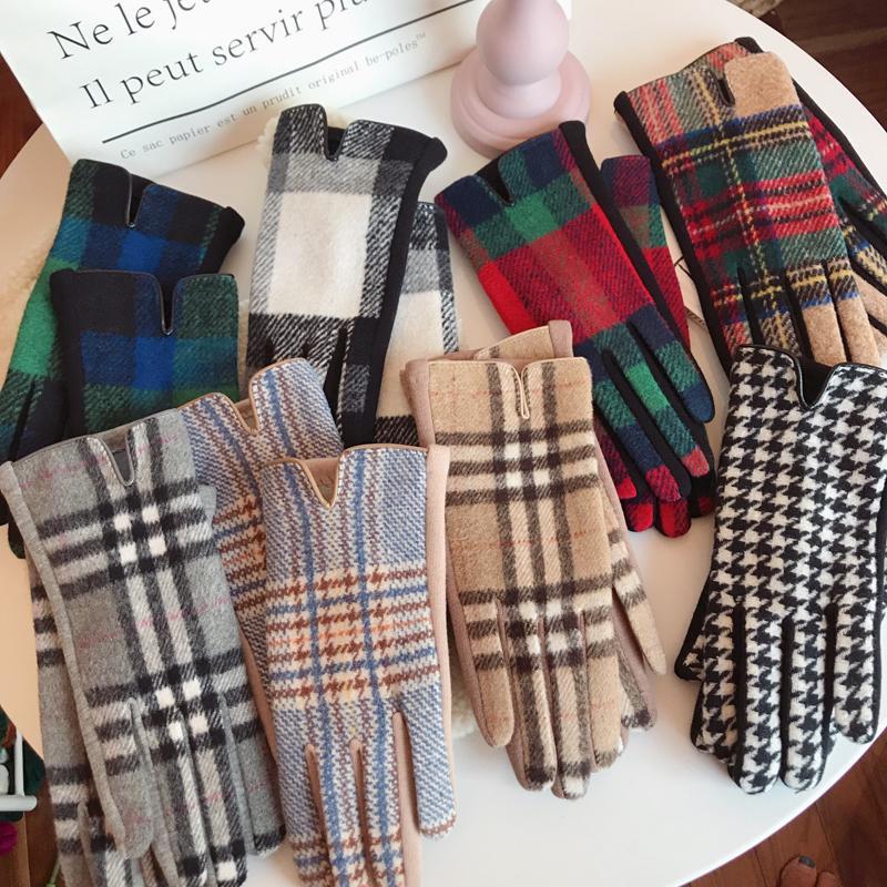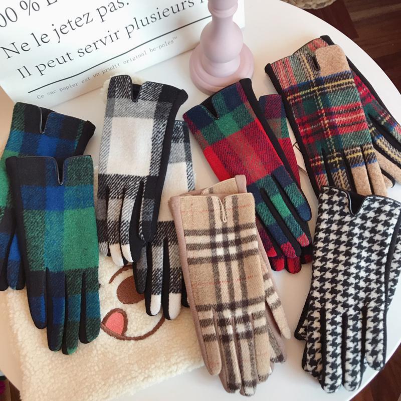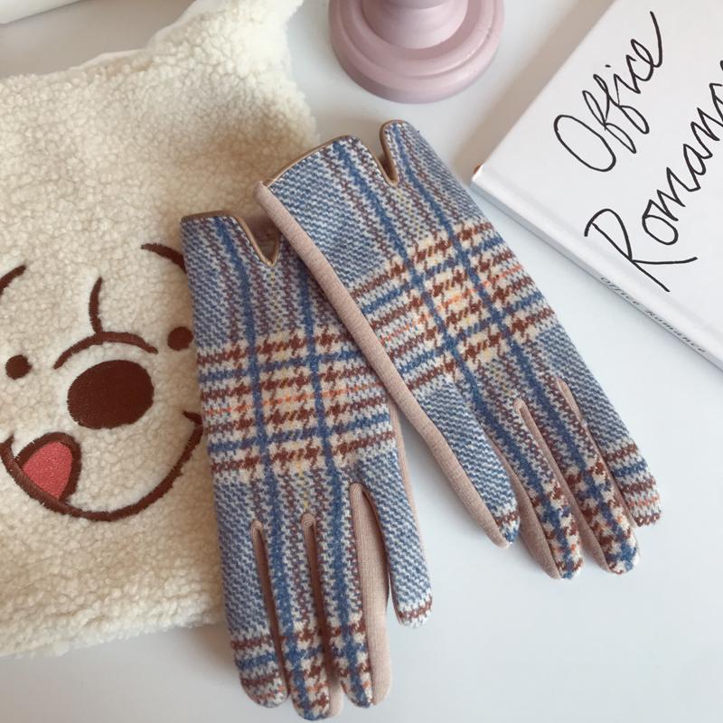 일본 소녀 가을과 겨울 격자 무늬 양모 장갑 여성 학생 한국식 손가락 터치 스크린 캐시미어 기모 두꺼운 따뜻한