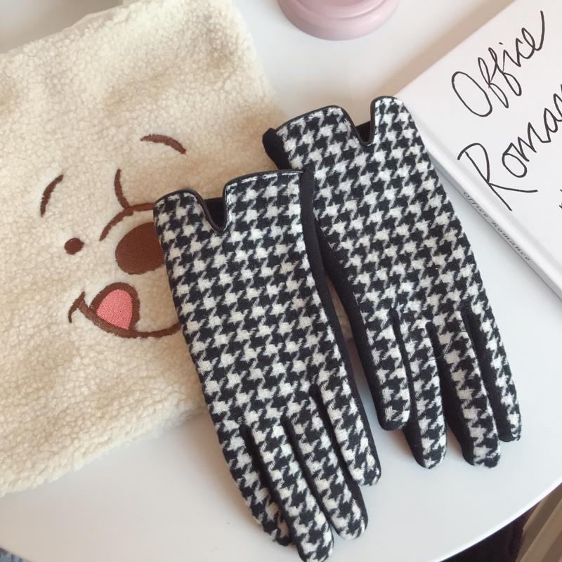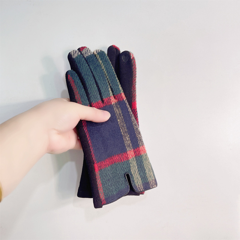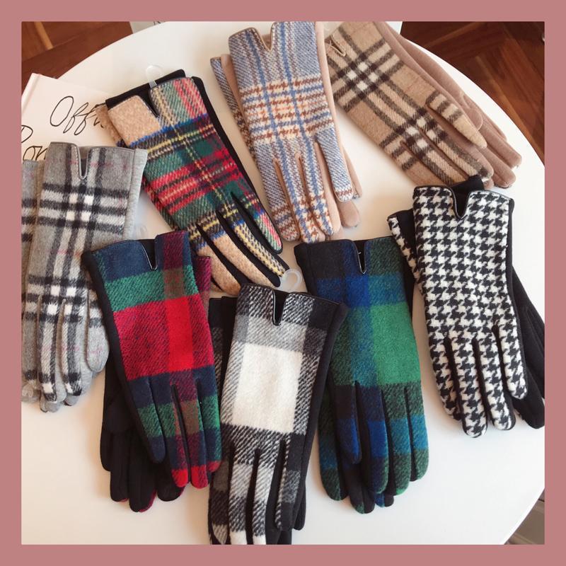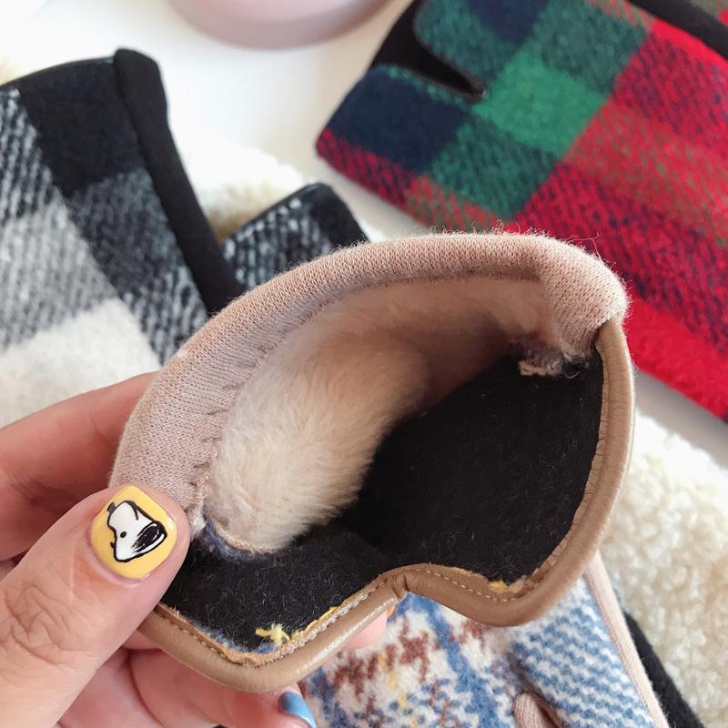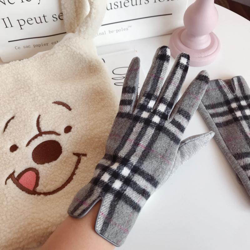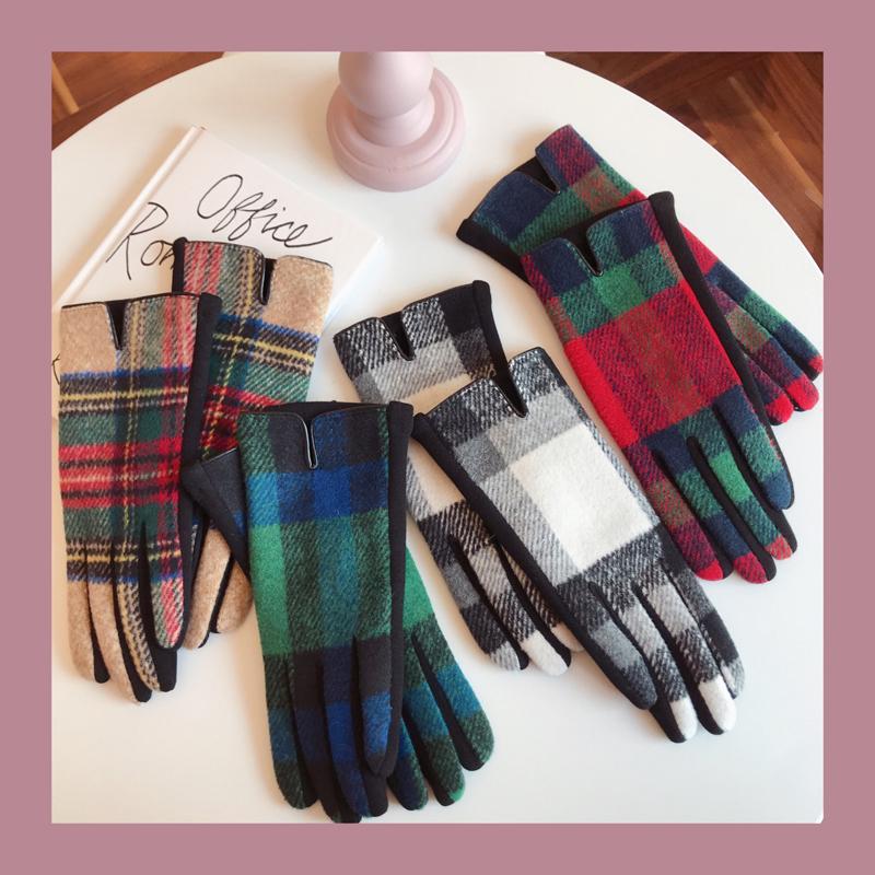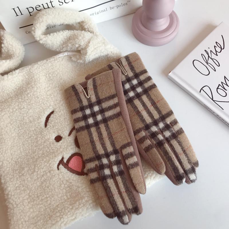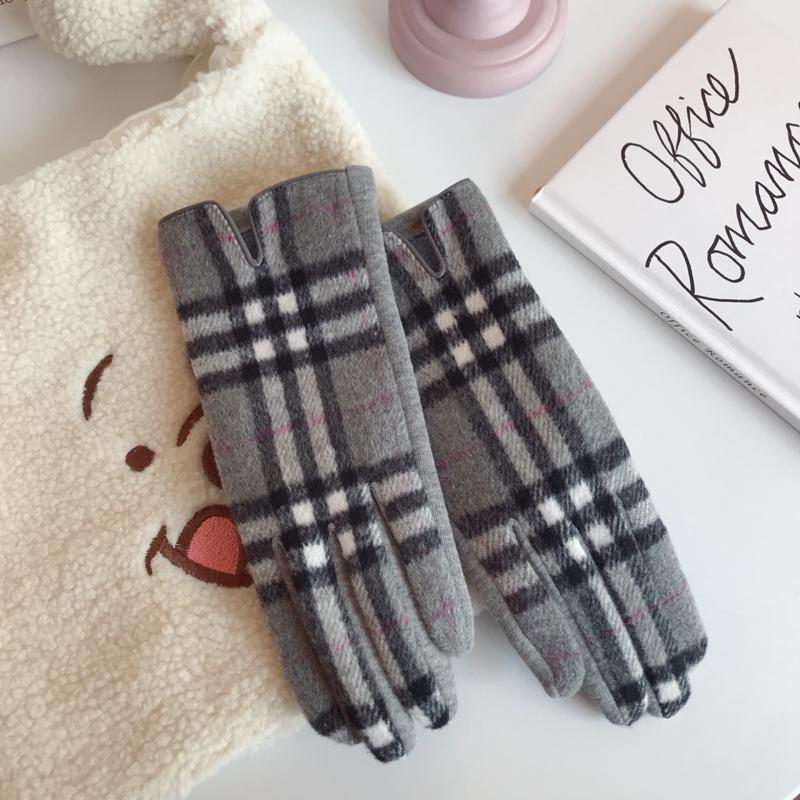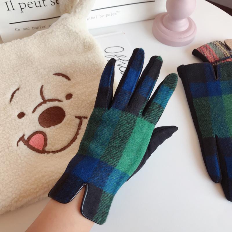 일본 소녀 가을과 겨울 격자 무늬 양모 장갑 여성 학생 한국식 손가락 터치 스크린 캐시미어 기모 두꺼운 따뜻한