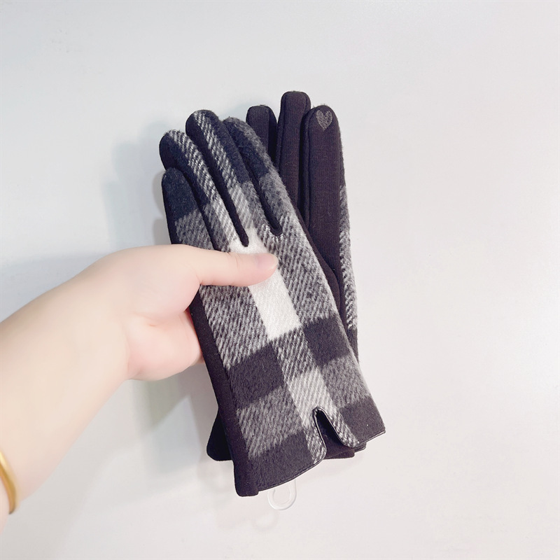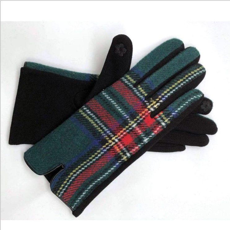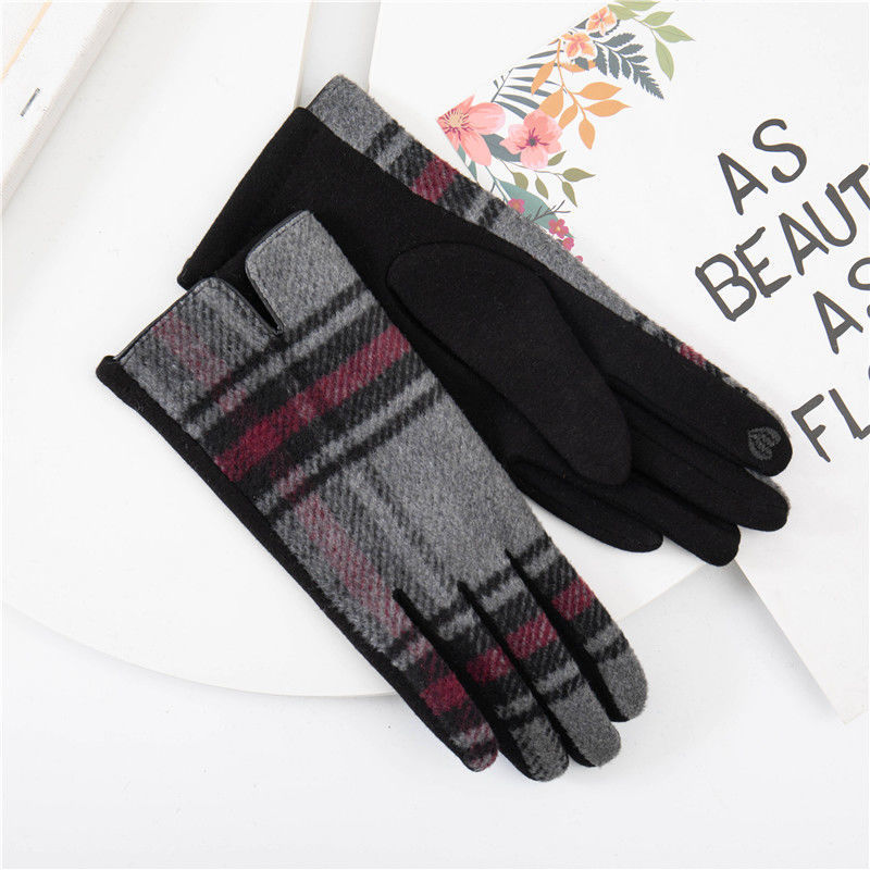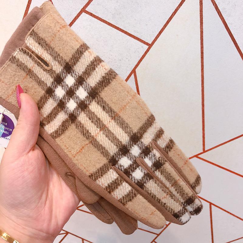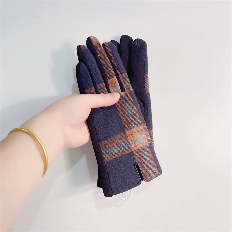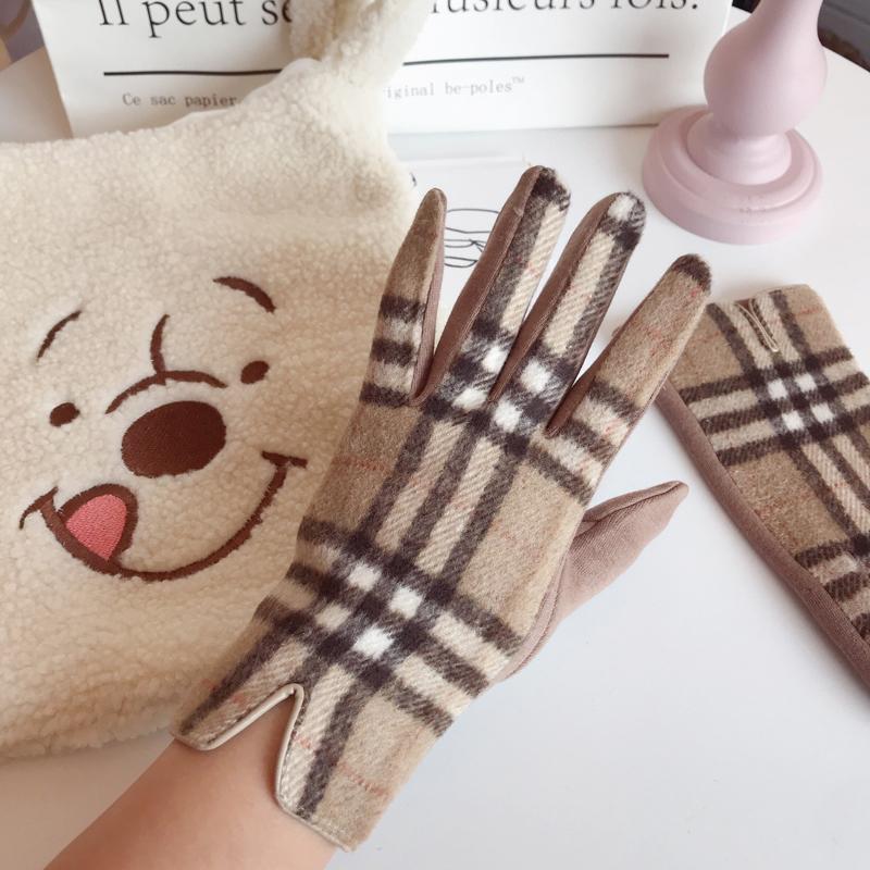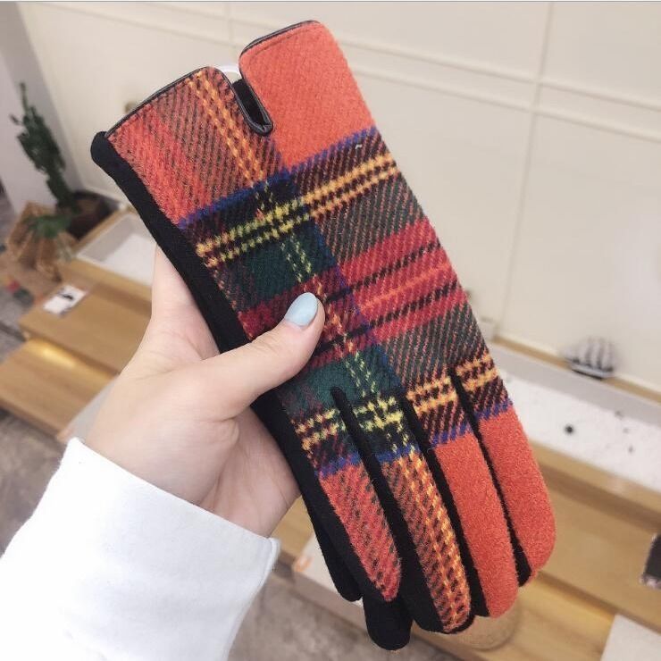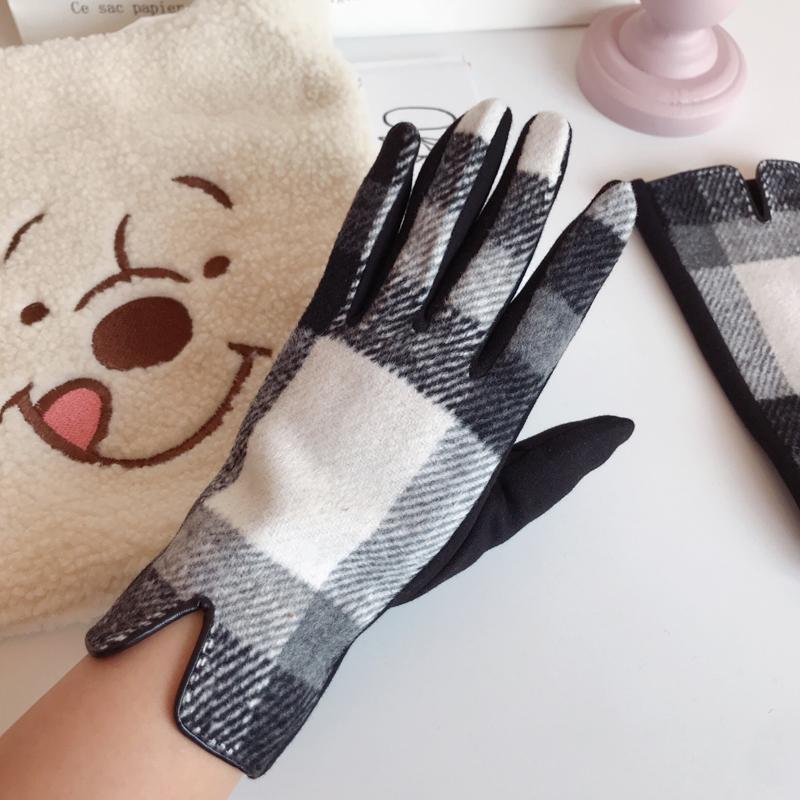 일본 소녀 가을과 겨울 격자 무늬 양모 장갑 여성 학생 한국식 손가락 터치 스크린 캐시미어 기모 두꺼운 따뜻한
