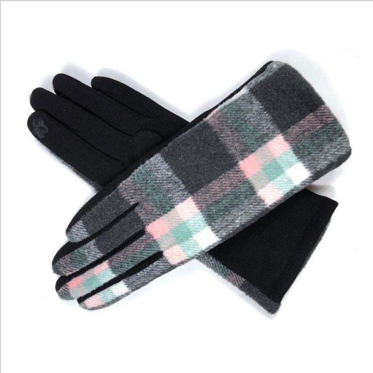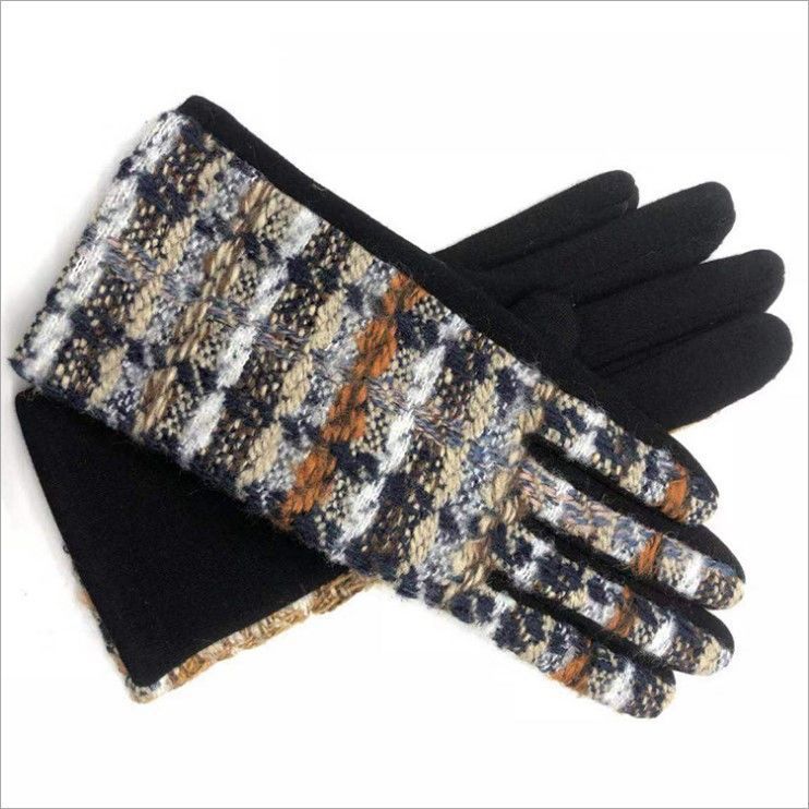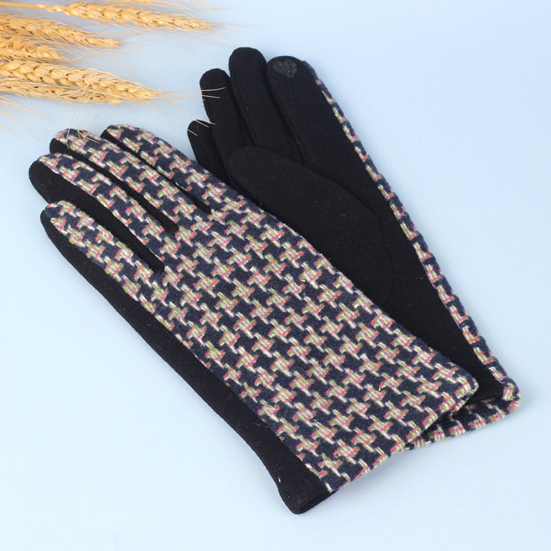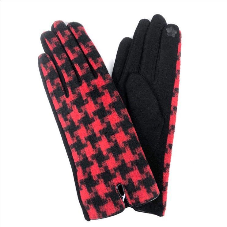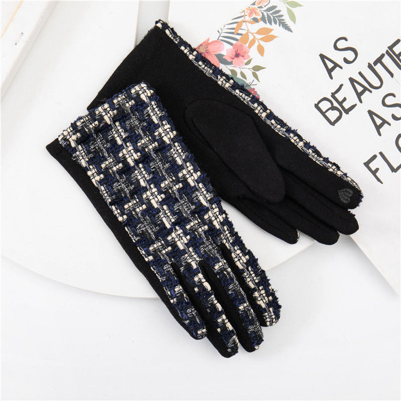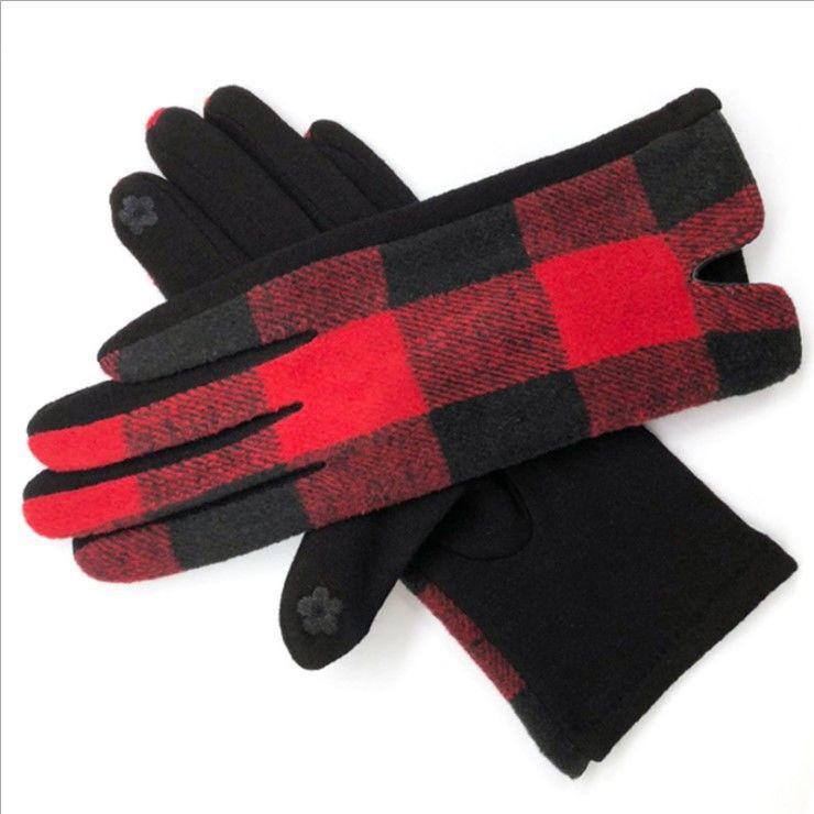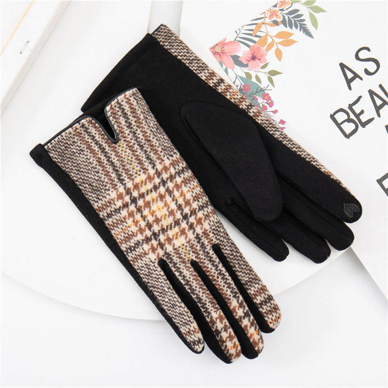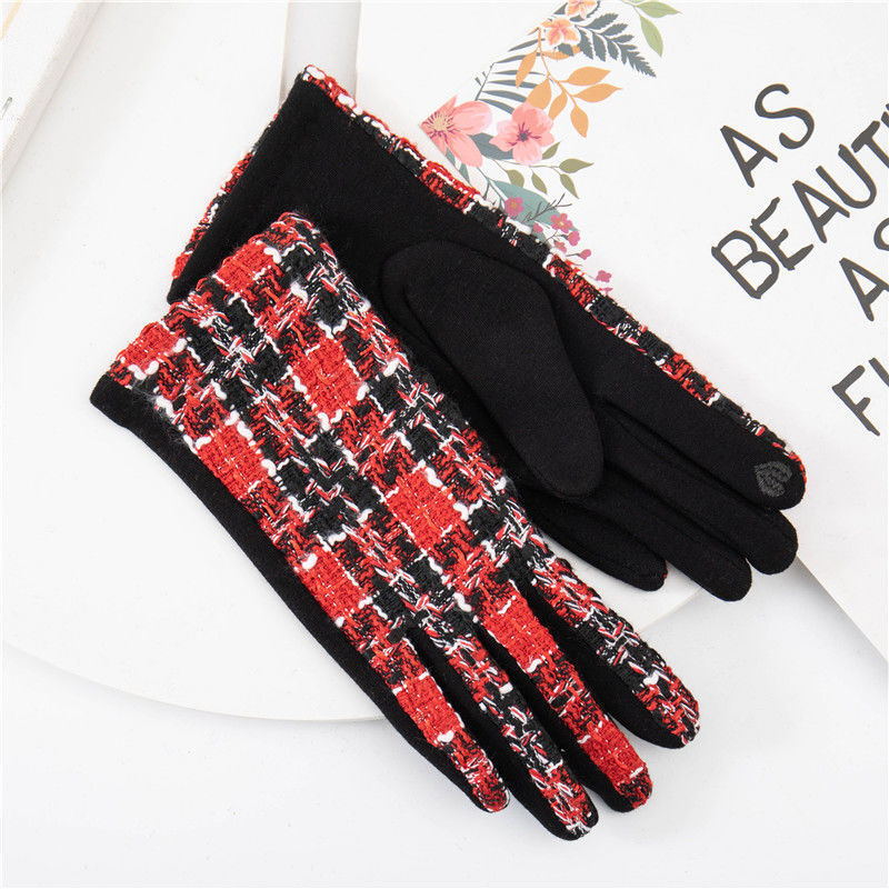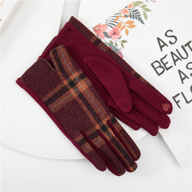 일본 소녀 가을과 겨울 격자 무늬 양모 장갑 여성 학생 한국식 손가락 터치 스크린 캐시미어 기모 두꺼운 따뜻한