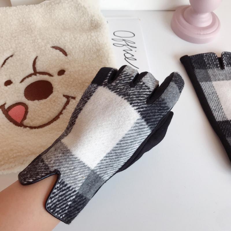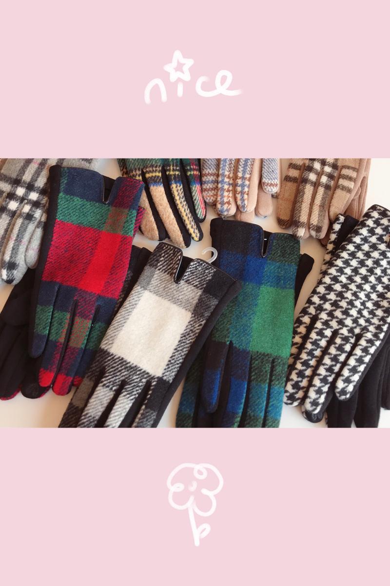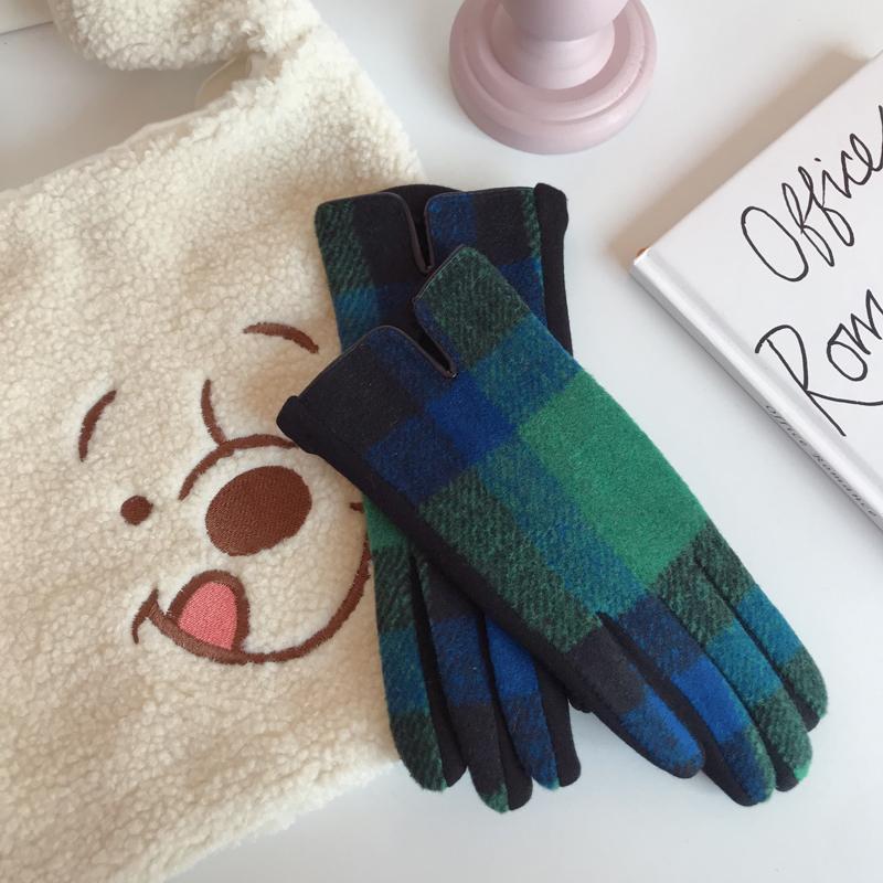 일본 소녀 가을과 겨울 격자 무늬 양모 장갑 여성 학생 한국식 손가락 터치 스크린 캐시미어 기모 두꺼운 따뜻한스토어 가기