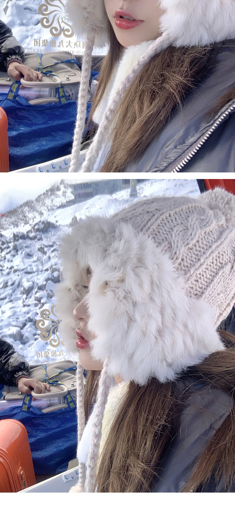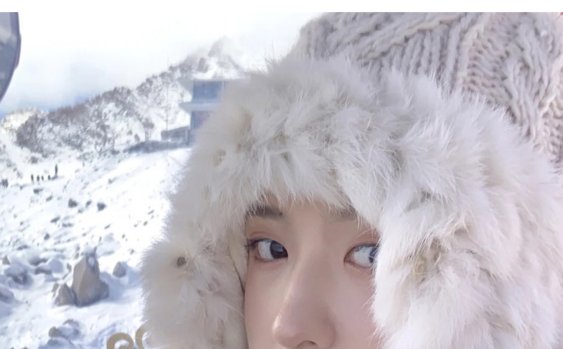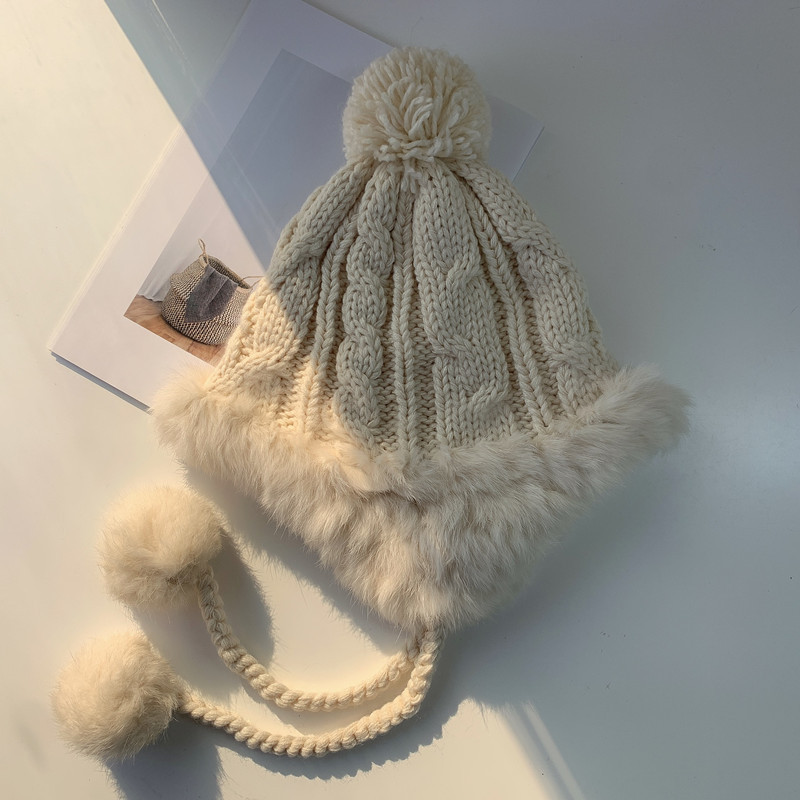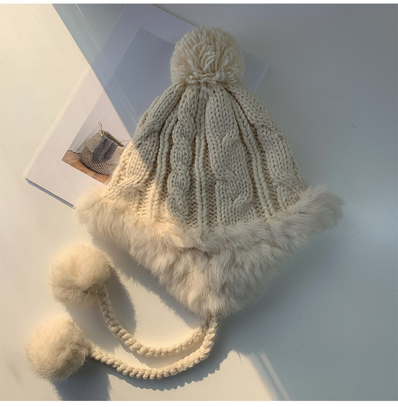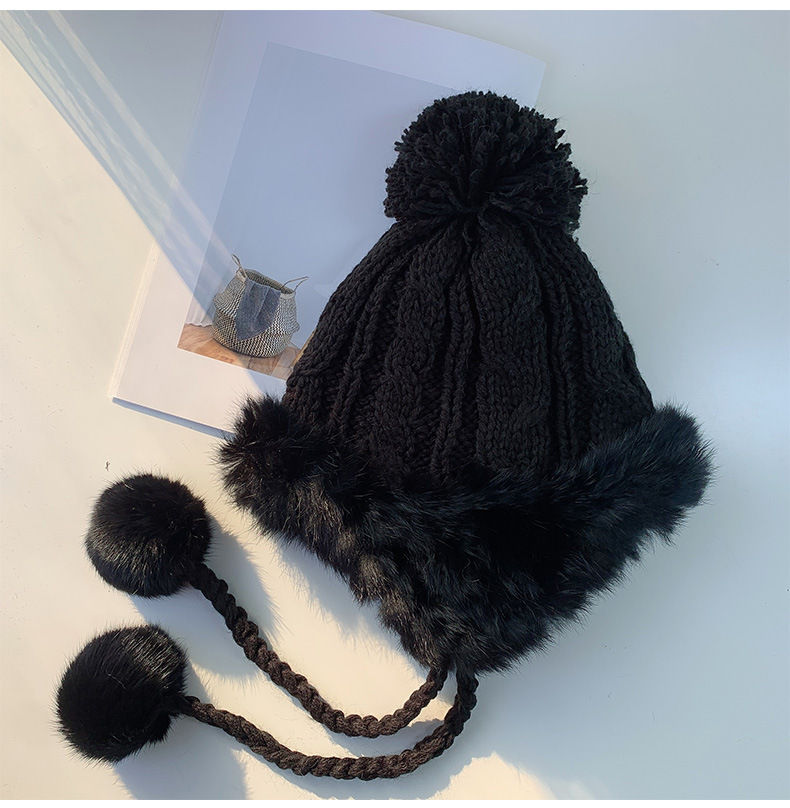 兔毛雷锋帽子女秋冬毛线帽韩版甜美可爱毛球护耳加绒保暖针织帽潮