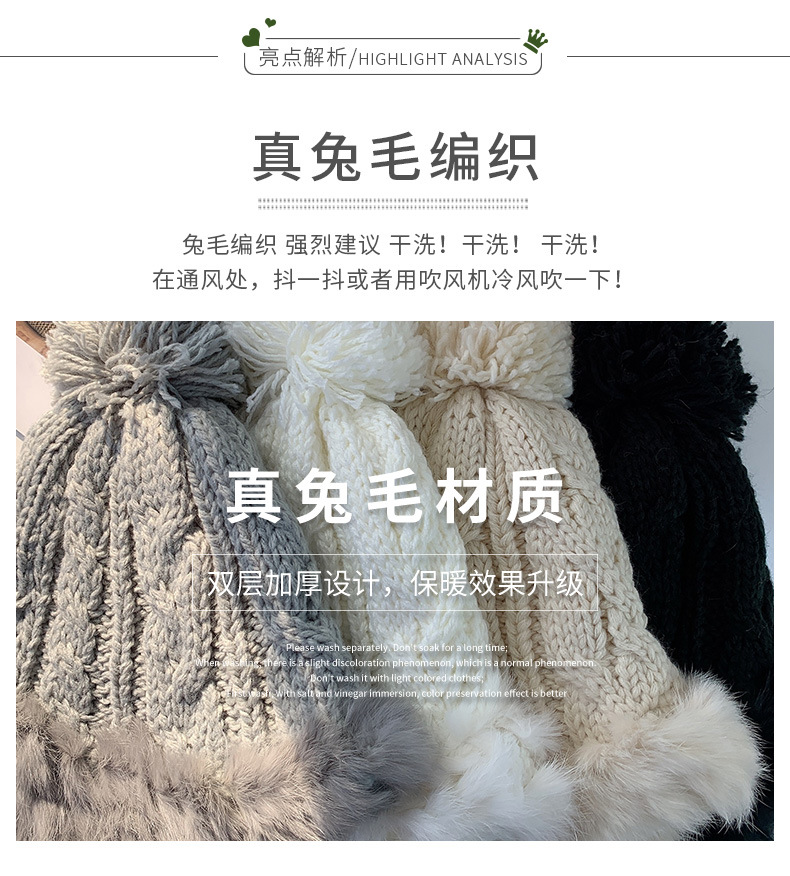 토끼 머리 Lei Feng 모자 여자의 가을과 겨울 양모 모자 한국어 달콤한 귀여운 헤어 볼 귀 보호 기모 따뜻한 니트 모자 패션