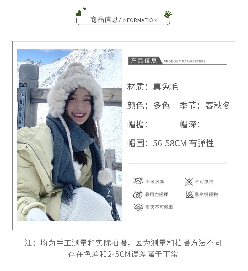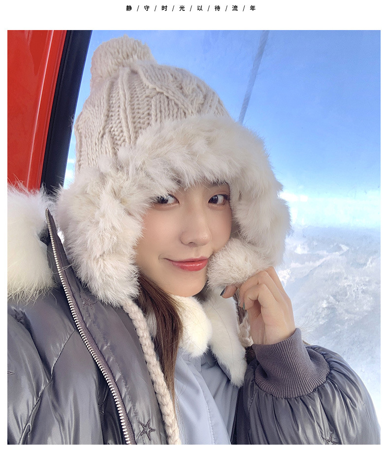 토끼 머리 Lei Feng 모자 여자의 가을과 겨울 양모 모자 한국어 달콤한 귀여운 헤어 볼 귀 보호 기모 따뜻한 니트 모자 패션스토어 가기
