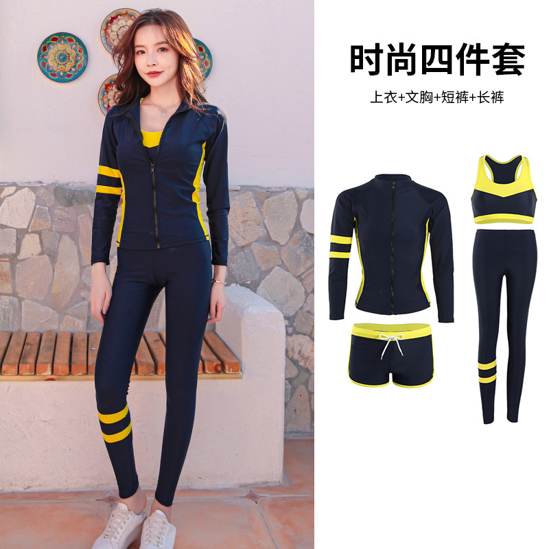 다이빙 세트 여성의 새로운 스플릿 서핑 세트 긴팔 해파리 세트 다이빙 세트 자외선 차단제 4 피스 수영복 재고스토어 가기