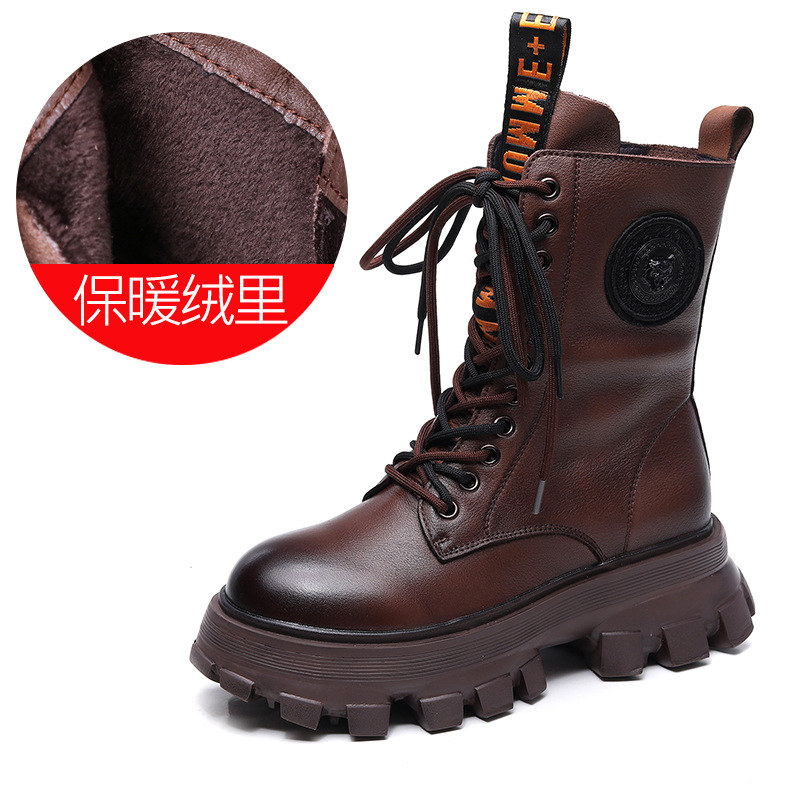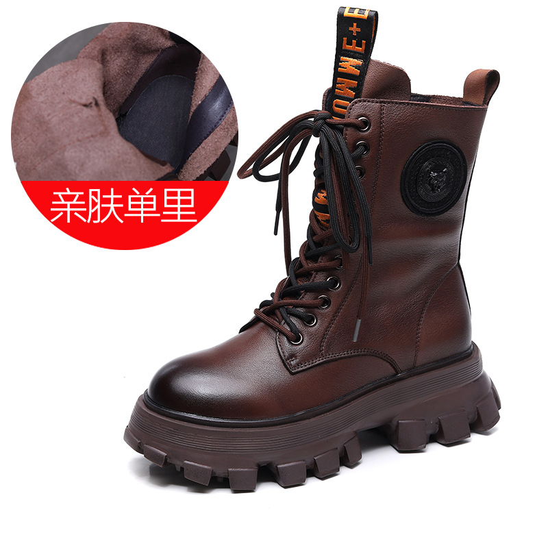 여성용 가을 겨울용 1층 소가죽 마틴 부츠, 보온성 강화, 신상품, 다용도, 플랫폼 밑창, 중간 길이, 지퍼, 바이커 부츠, 하이힐스토어 가기