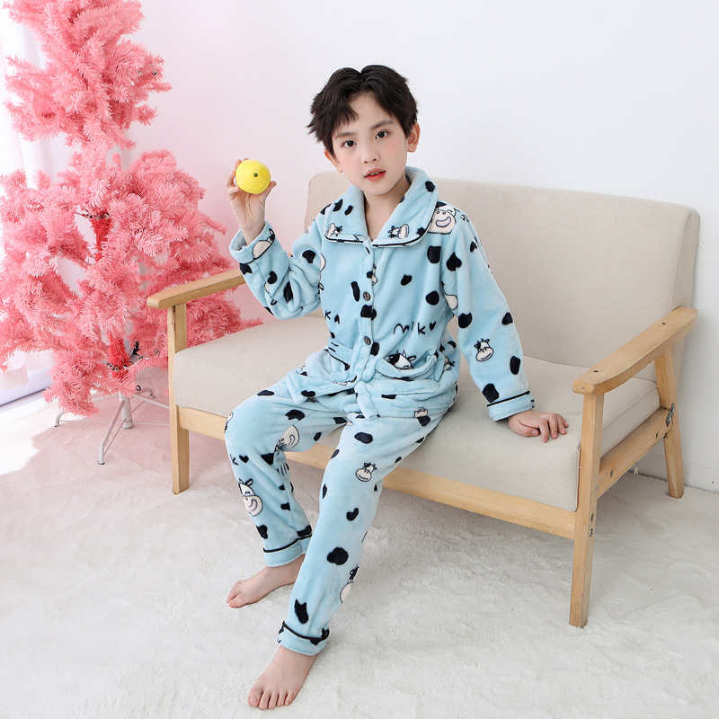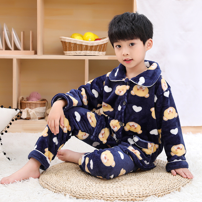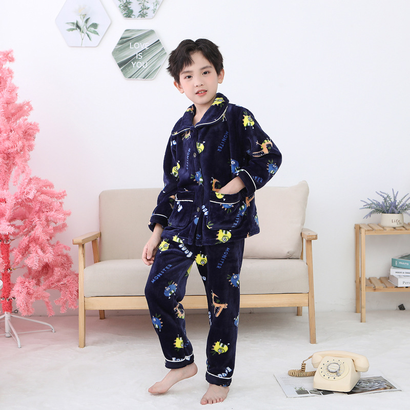 가을과 겨울 세트 어린이 플란넬 잠옷 새로운 대형 어린이 가정 의류 세트 아이 기모 남자와 여자를 위해 두껍게스토어 가기