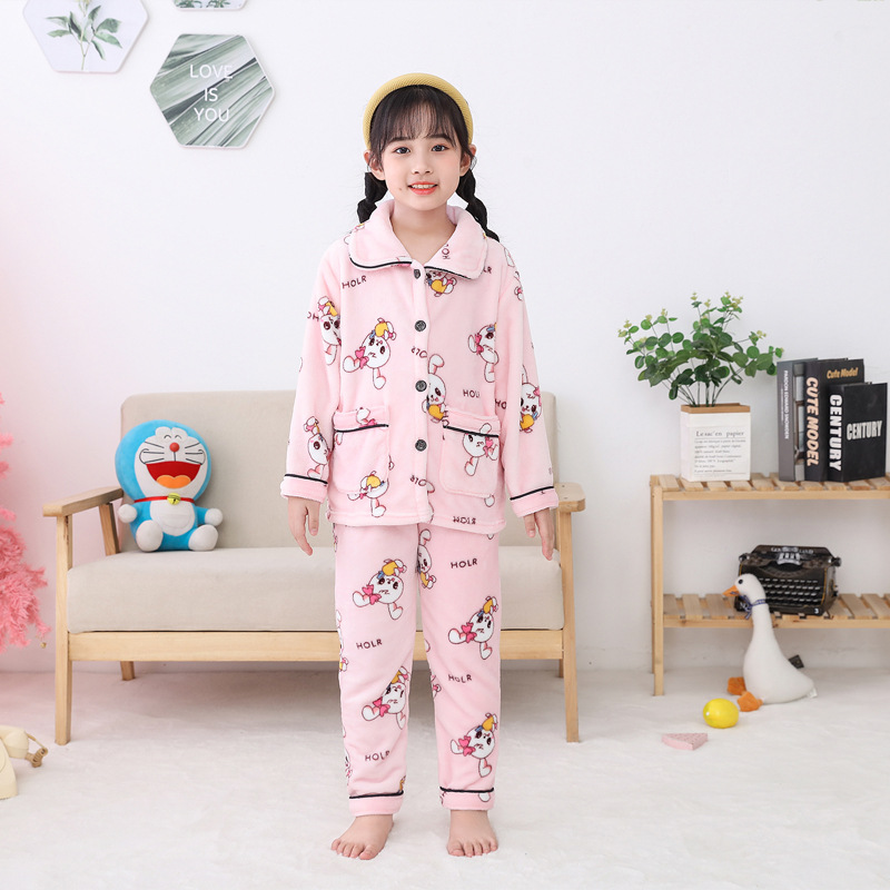 가을과 겨울 세트 어린이 플란넬 잠옷 새로운 대형 어린이 가정 의류 세트 아이 기모 남자와 여자를 위해 두껍게