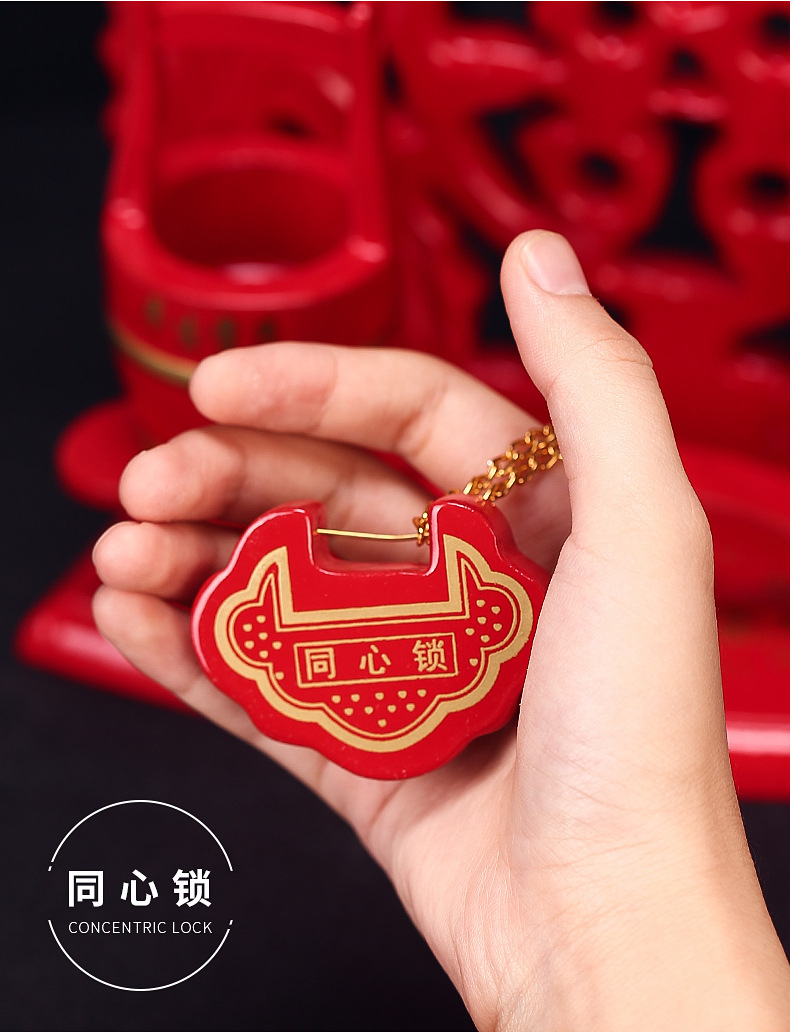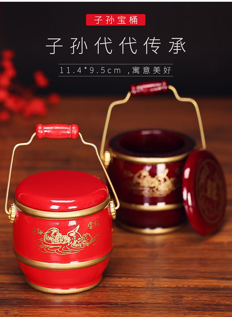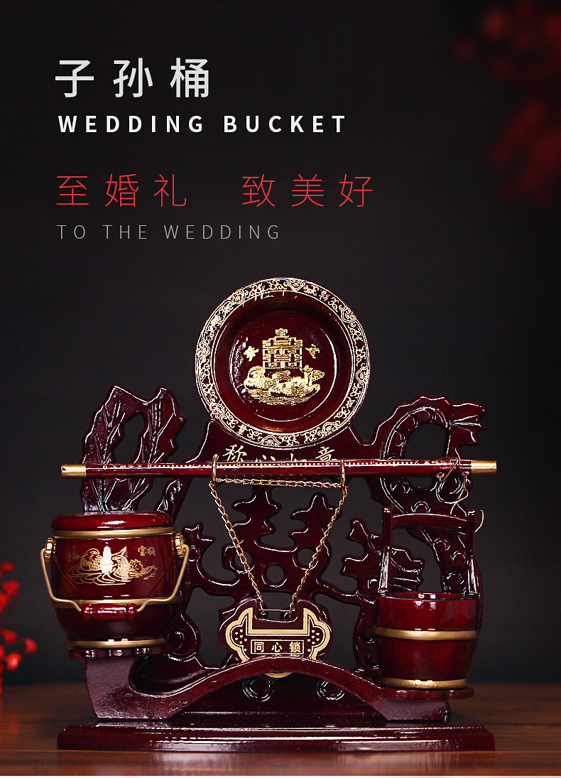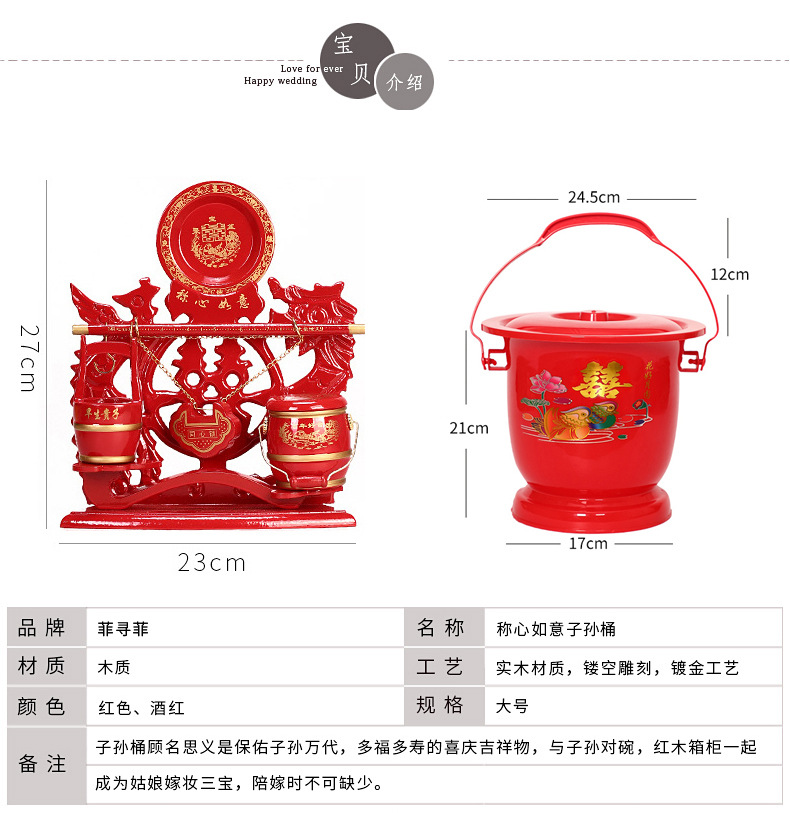 三件套实木红木色小号子孙桶套装婚庆结婚马桶同心锁陪嫁嫁妆摆件