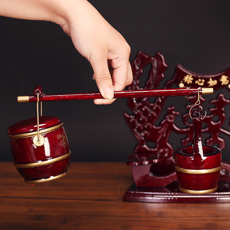 Zi Sun 버킷 3 피스 세트 단단한 나무 마호가니 색상 작은 세트 웨딩 웨딩 화장실 동심 잠금 지참금 지참금 장식품