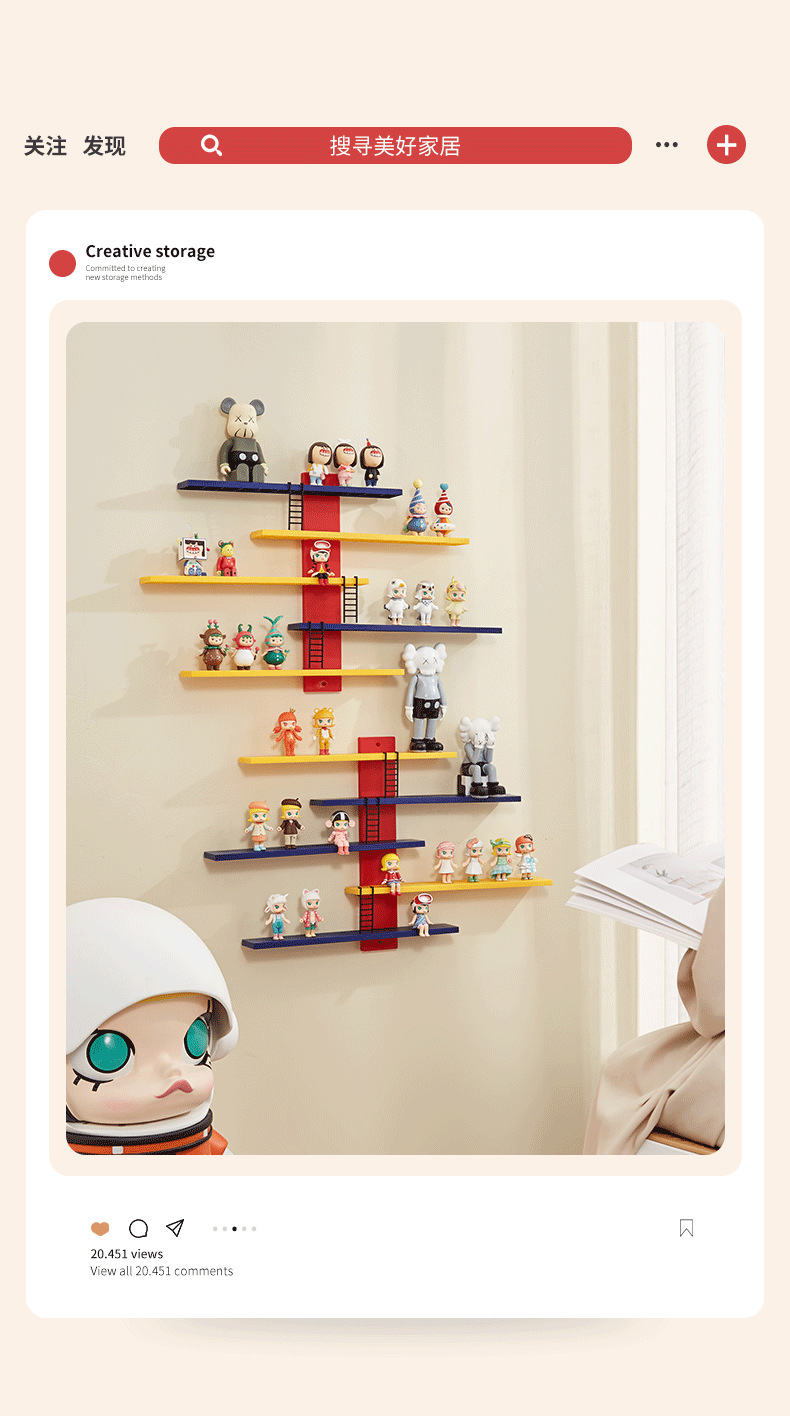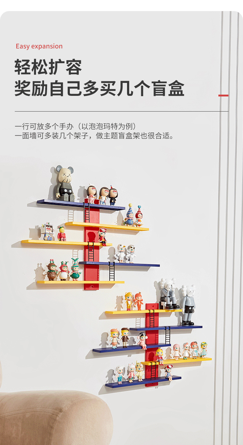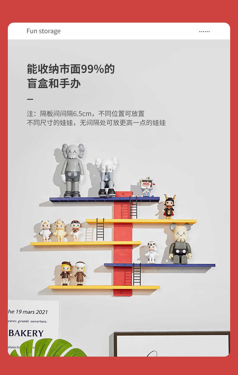 벽 매달린 블라인드 박스 스토리지 박스 DIY 버블 마트 핸드 디스플레이 랙 벽 펀치없는 침실 장난감 더링 랙