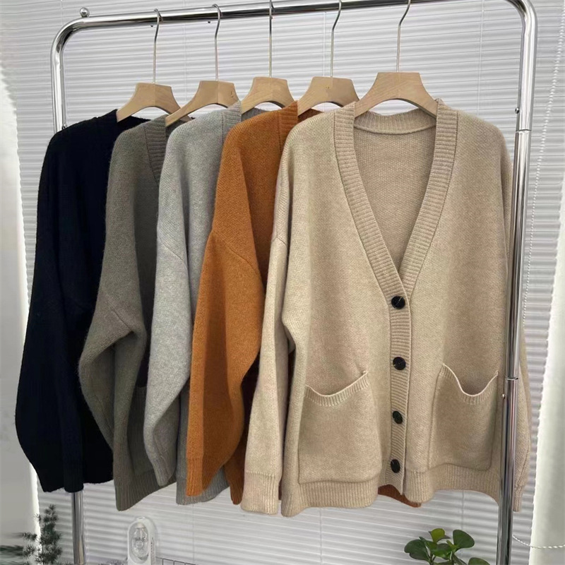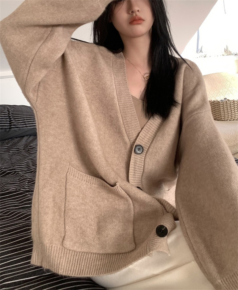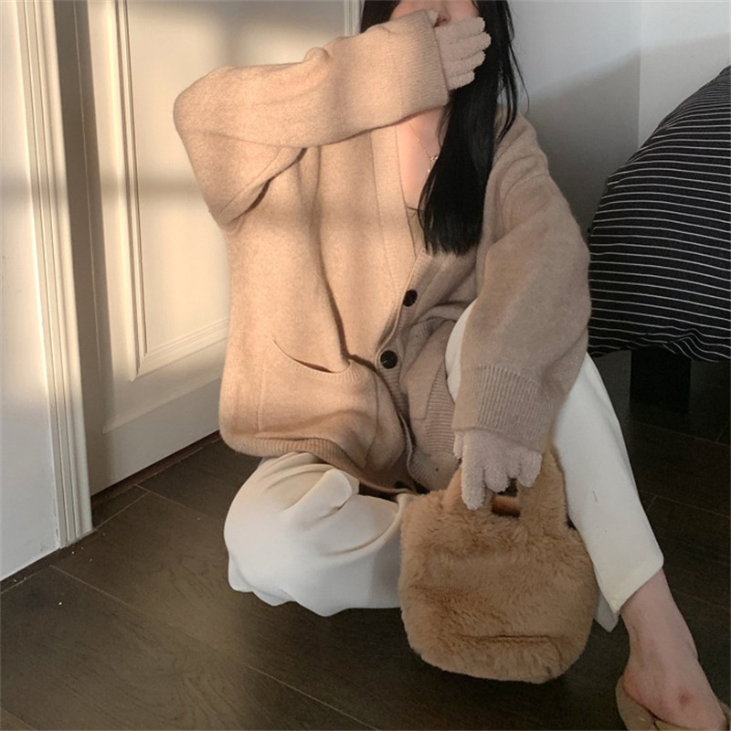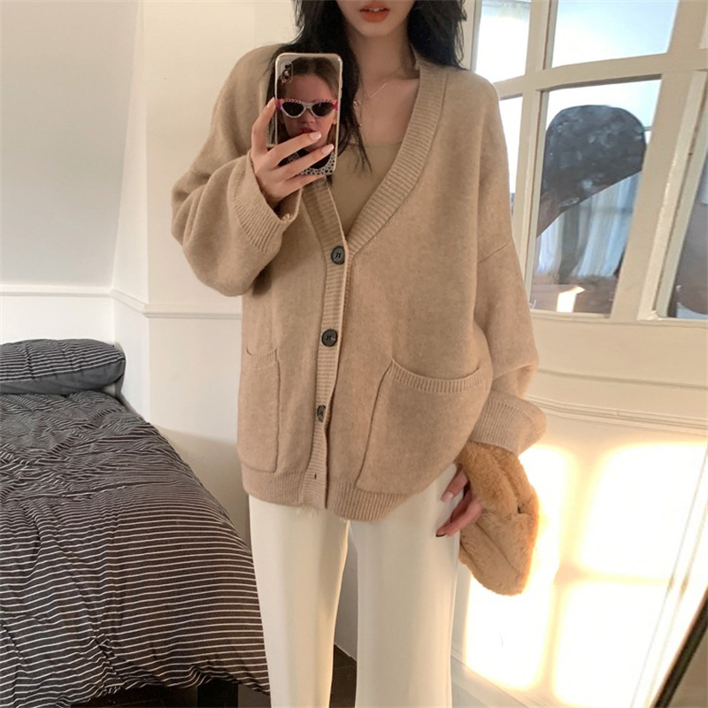 플러스 사이즈 여성 복고풍 스웨터 재킷 여성 가을, 겨울 새로운 부드럽고 왁시 한 서양식 게으른 스타일 v 넥 니트 카디건 탑