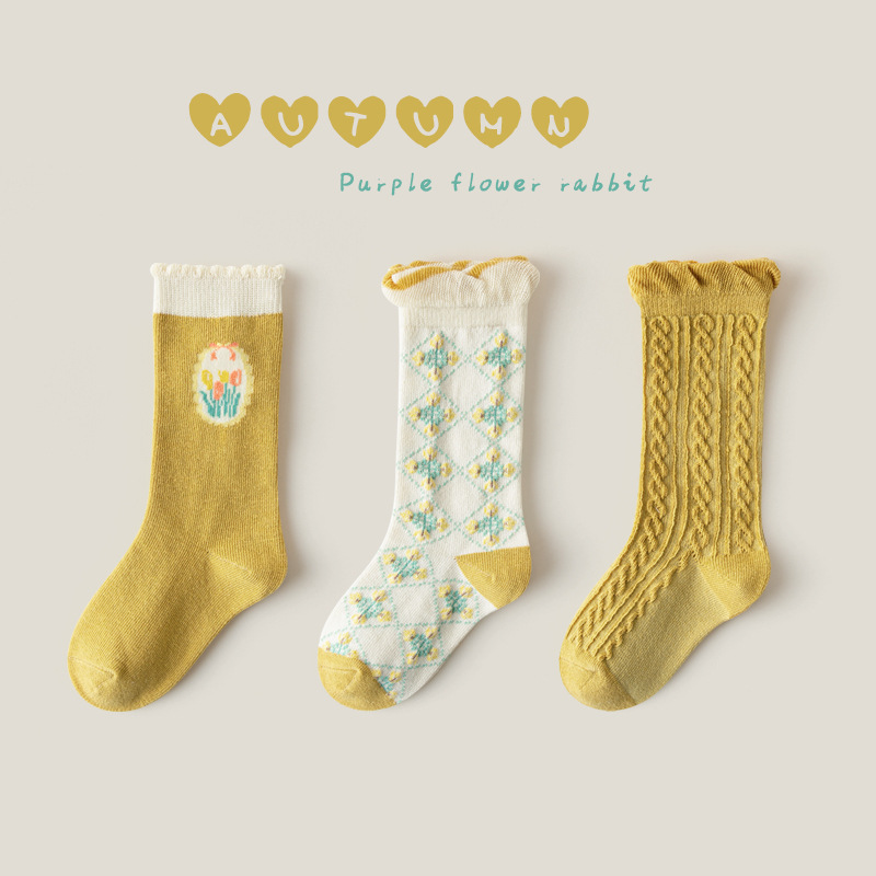 새로운 어린이 양말 도매 가을 귀여운 활 더블 원사 아기 양말 만화 소녀 양말 튜브 양말