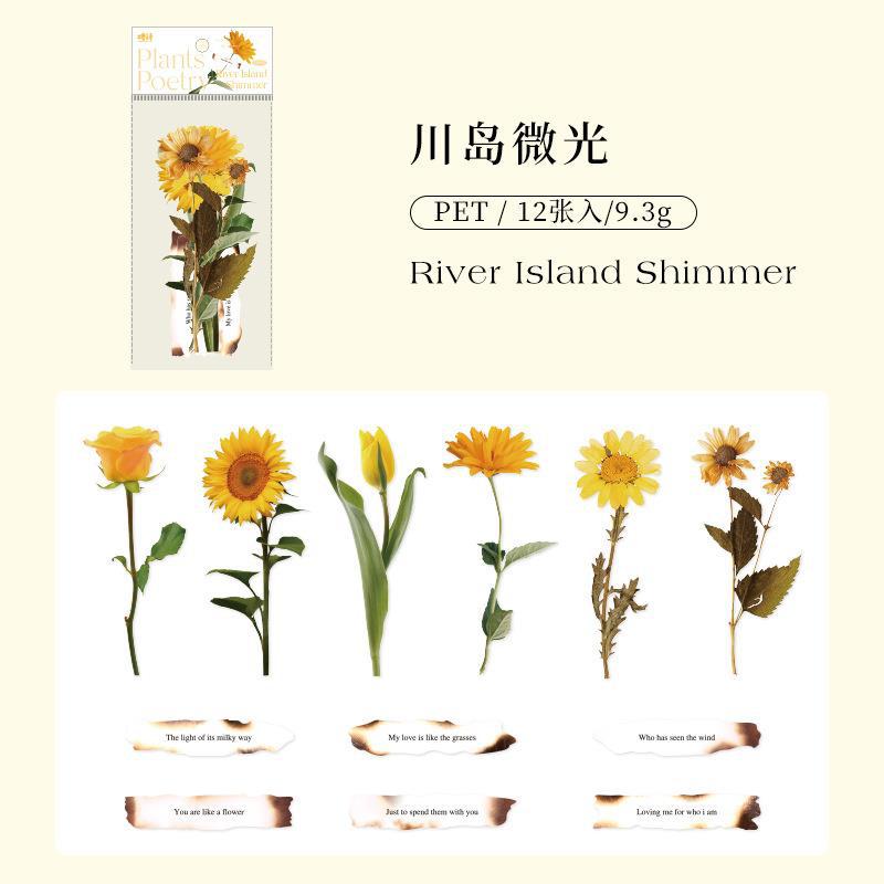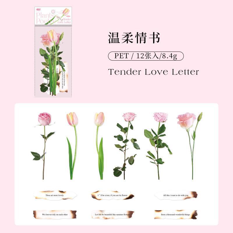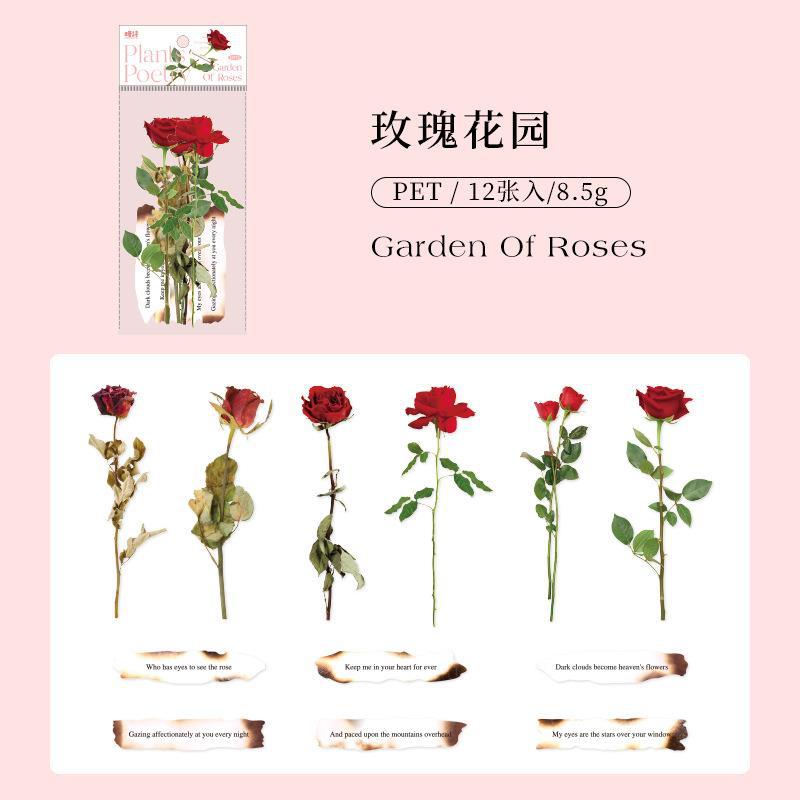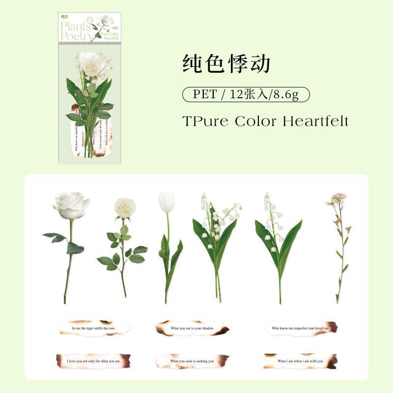 설탕시 PET 스티커 패키지 식물 및시 시리즈 문학 장미 DIY 손 계정 성격 재료 스티커 8
