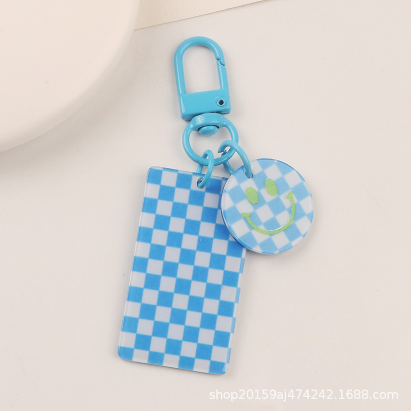 새로운 스타일의 신선한 자동차 키 체인 펜던트 DIY 격자 무늬 웃는 얼굴 교수형 액세서리 이어폰 커버 커플 가방 장식