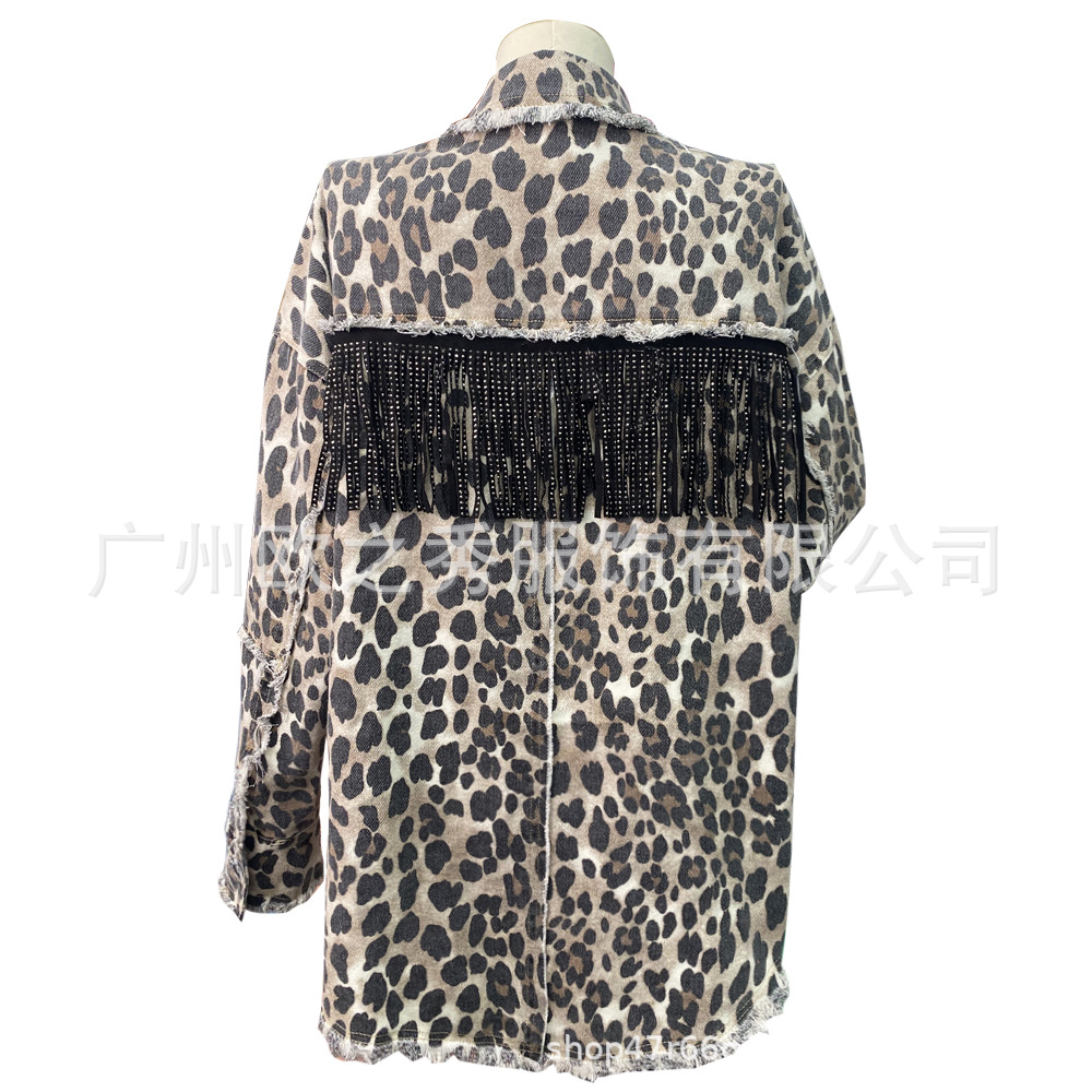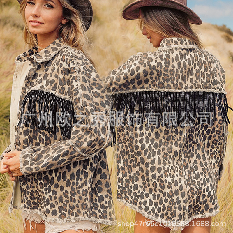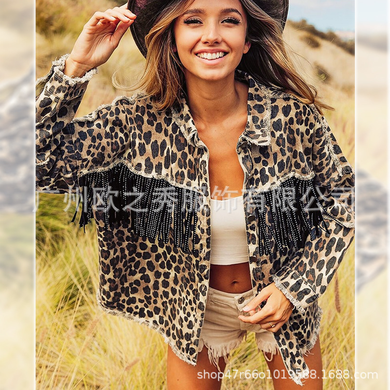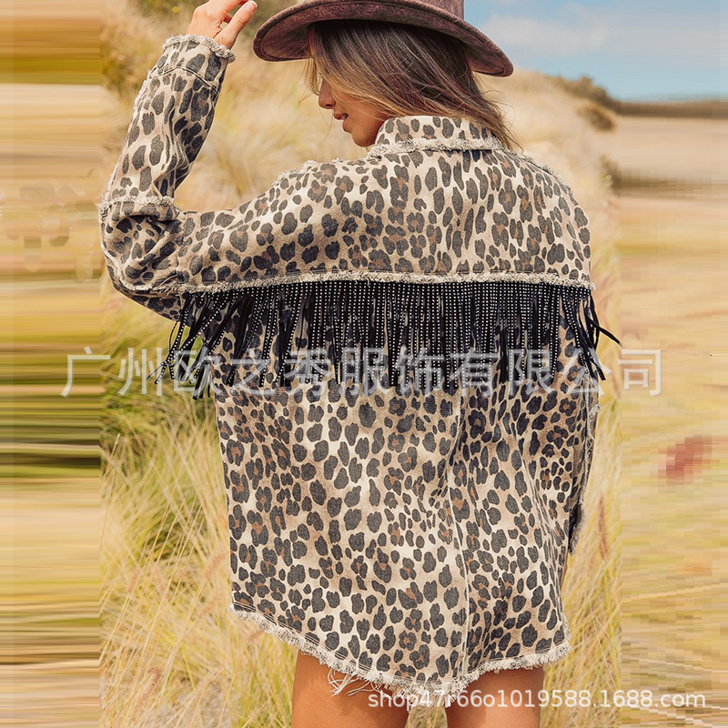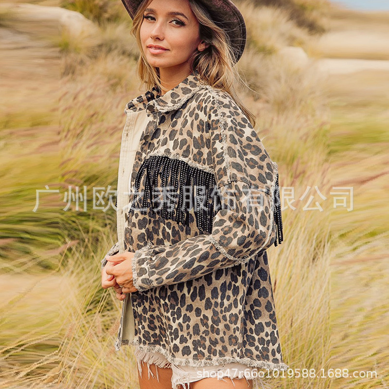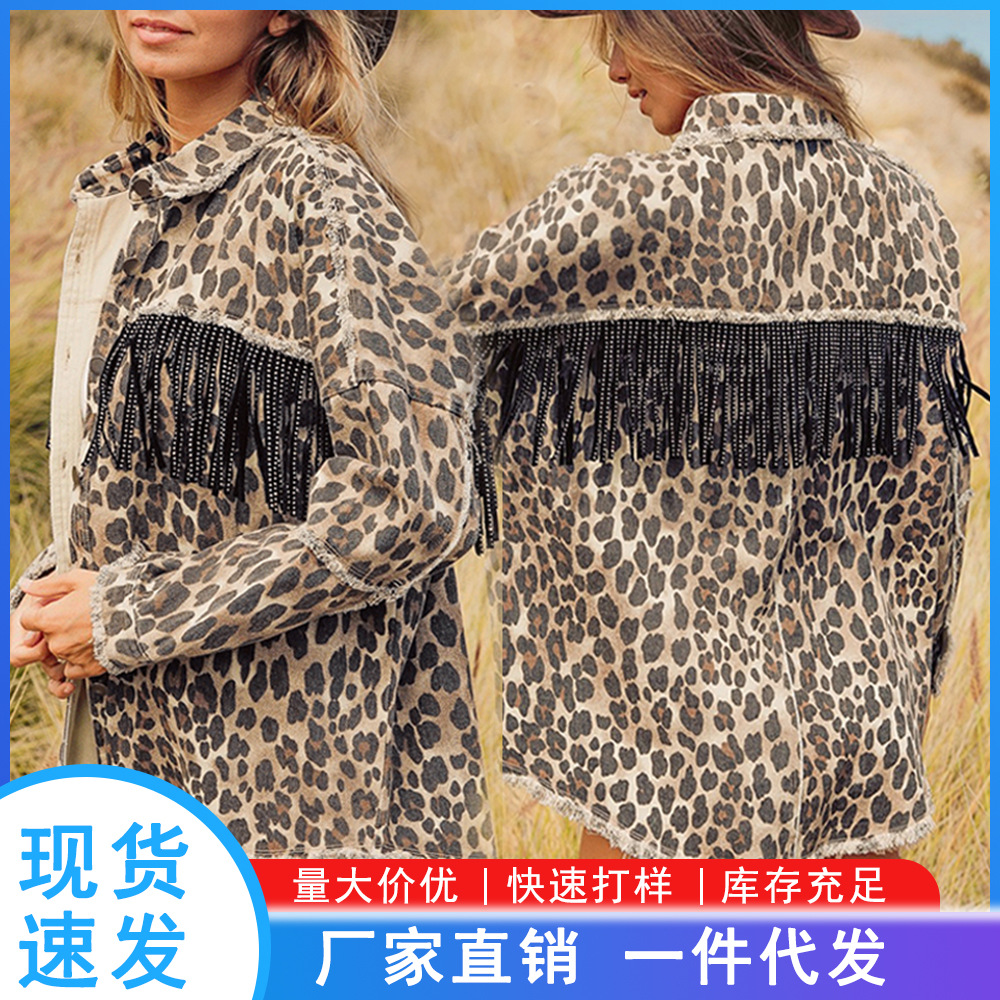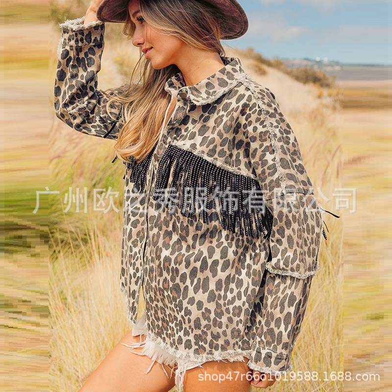 2024 AliExpress 새로운 폭발 술 데님 재킷 여성의 봄 씻은 표범 데님 재킷 외부 착용