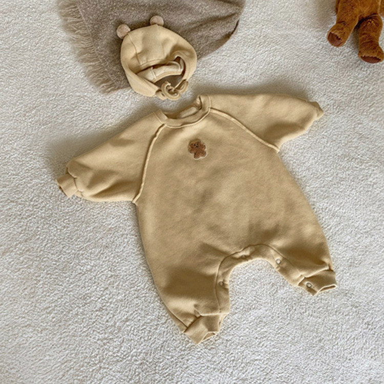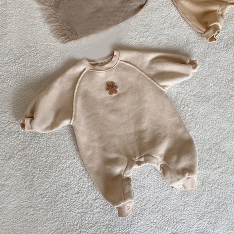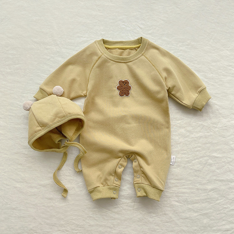 2024 가을 곰 수건 자수 스웨트 셔츠 아기 점프 슈트 신생아 옷 아기 긴 바디 슈트