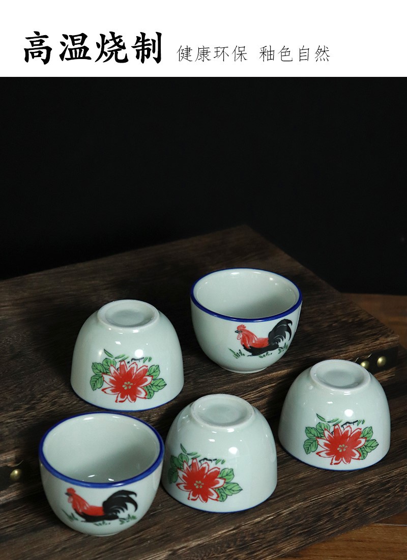 세라믹 찻잔 중국 세라믹 수탉 빈티지 세라믹 작은 물 컵 호텔 찻집 청자 수탉 초기 차 컵스토어 가기