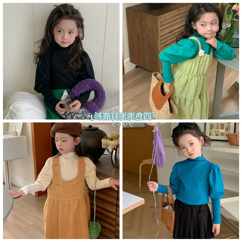 여아용 하의용 셔츠 반하이넥 퍼프 소매 디자인 우아한 상의 티셔츠 25 봄 가을 겨울 신상품 수출용 아동복스토어 가기