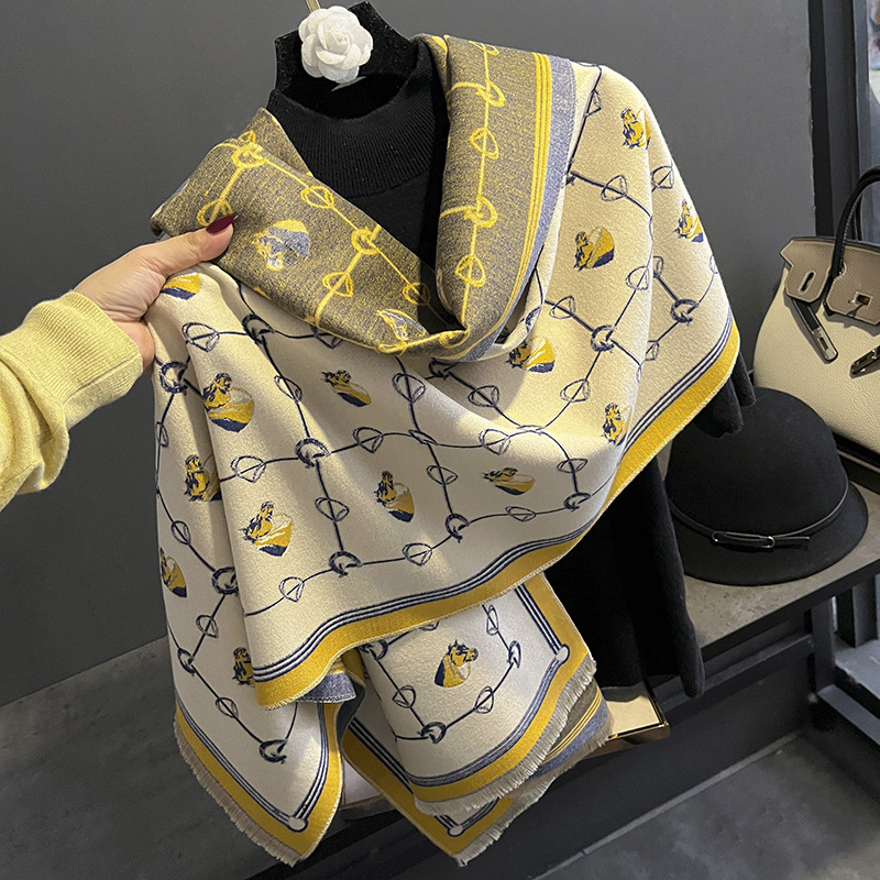 새로운 패션 캐시미어 스카프 여성의 겨울 한국 스타일 우아한 양면 두꺼운 학생 방풍 스카프 에어컨 숄