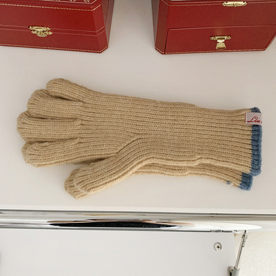 한국 면 장갑 여자의 가을과 겨울 귀여운 학생을위한 따뜻한 사이클링 니트 울 손가락 터치 스크린