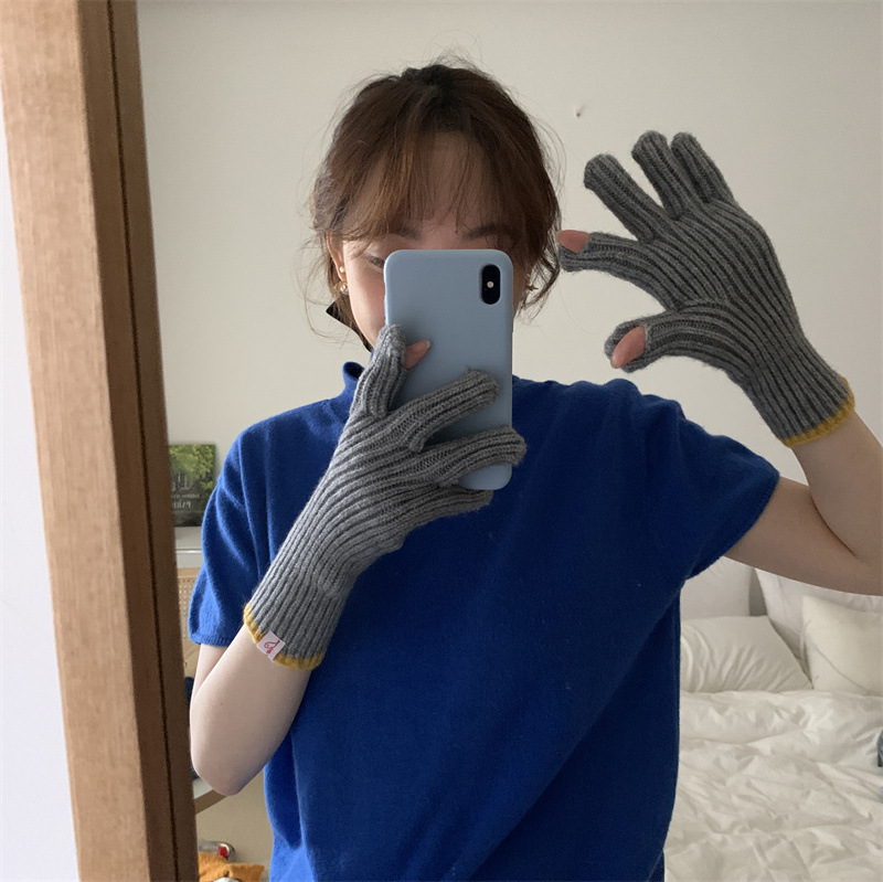 한국 면 장갑 여자의 가을과 겨울 귀여운 학생을위한 따뜻한 사이클링 니트 울 손가락 터치 스크린스토어 가기