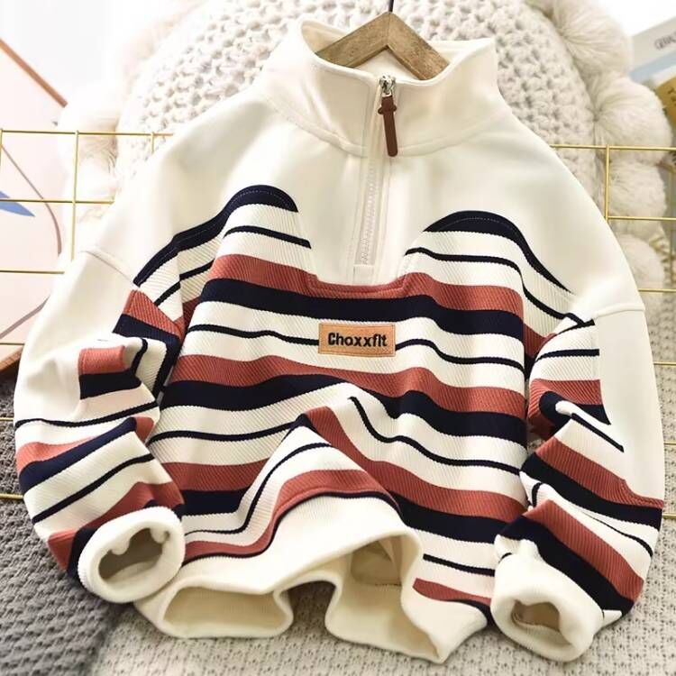 소년 면화 스웨터 2025 봄 신작 아동 스포츠 한국 스타일 잘 생긴 탑 중대형 어린이 봄, 가을 스탠드 업 칼라 셔츠스토어 가기