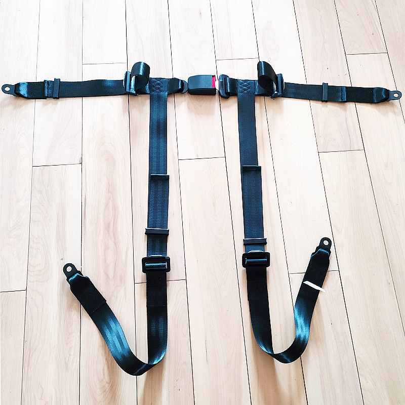 • 사이드 잠금 버클이 있는 검은색 4 점 안전 벨트