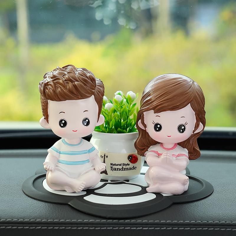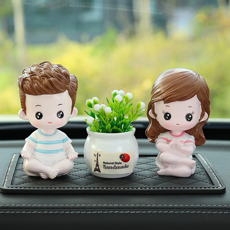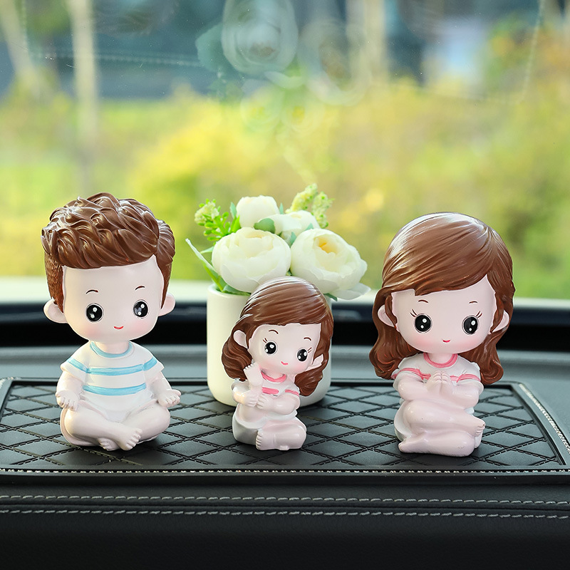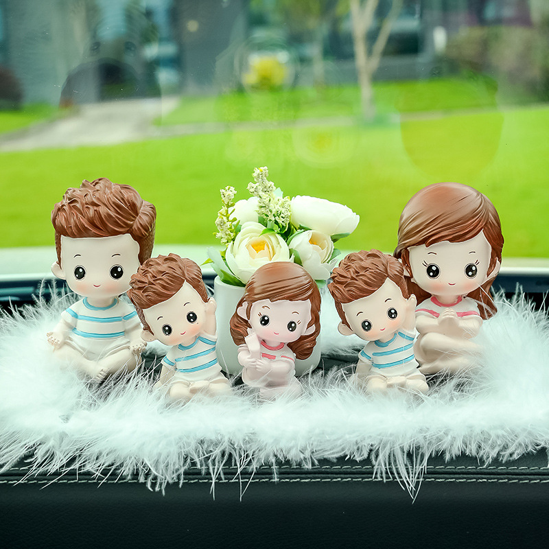자동차 장식품 행복한 가족 귀여운 요가 인형 창조적 인 수지 가족 아로마 테라피 시트 자동차 장식품