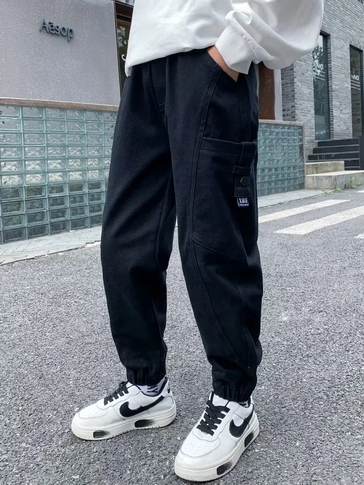 남아 바지 봄 가을 캐주얼 바지 2024 중대형 아동 작업복 아동 바지 뚱뚱한 아동 트렌디 브랜드 가을 의류 트렌디 아동