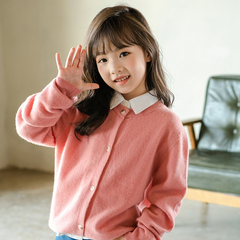 가을과 겨울 새로운 순수 울 니트 가디건 소년과 소녀 울 버클 스웨터 단색 니트 코트 베이스 탑스토어 가기