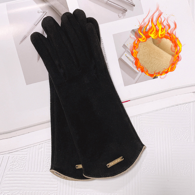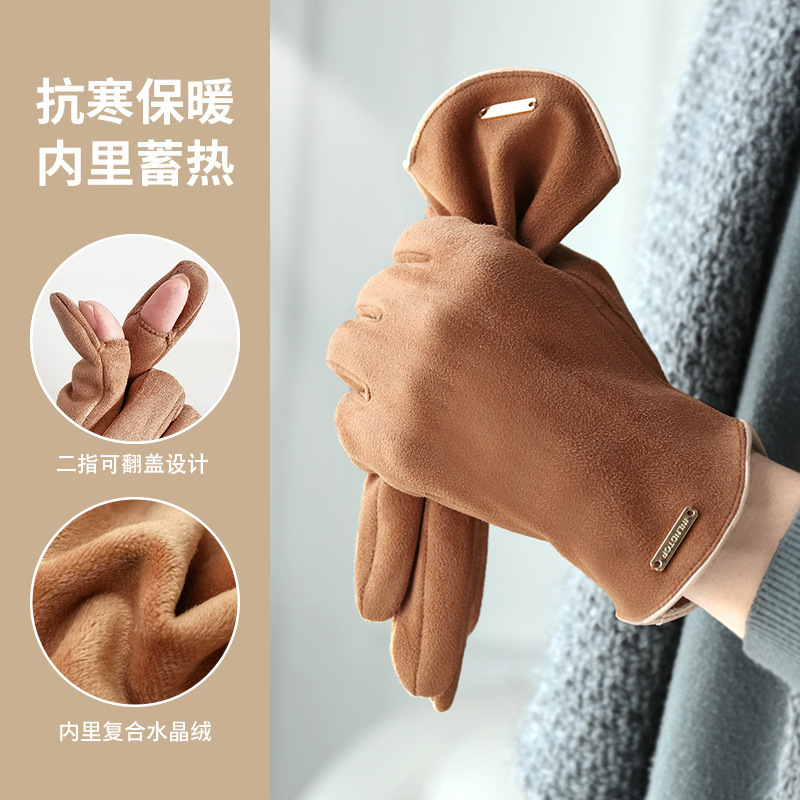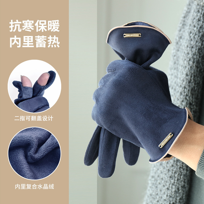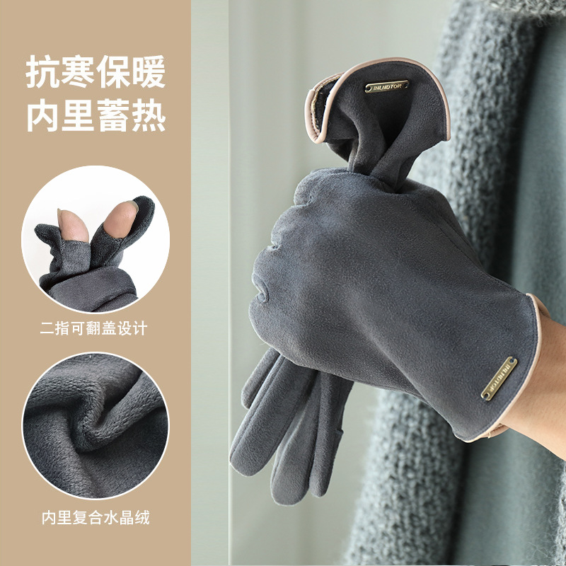 따뜻한 장갑 여자의 겨울 귀여운 스웨이드 방풍 운전 장갑 가을과 겨울 기모 사이클링 남성용 오픈 핑거 터치 스크린