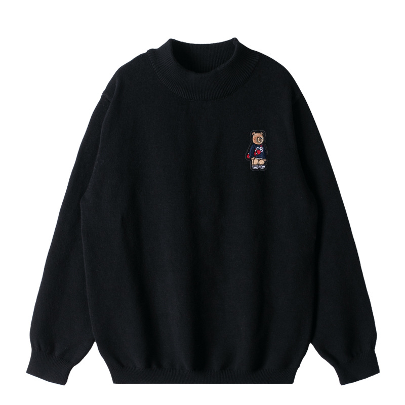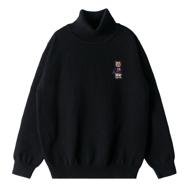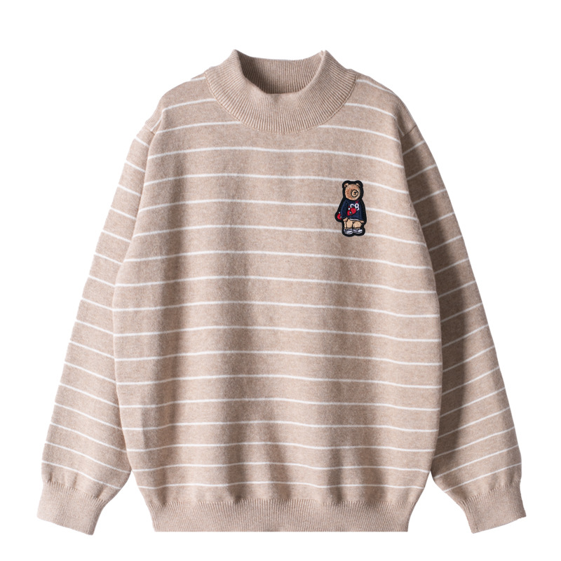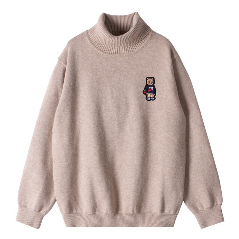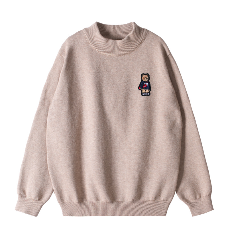 어린이 터틀넥 스웨터 가을과 겨울 여아 니트웨어 곰 남아베이스 셔츠 중형 및 대형 어린이 따뜻한 반 터틀넥 스웨터