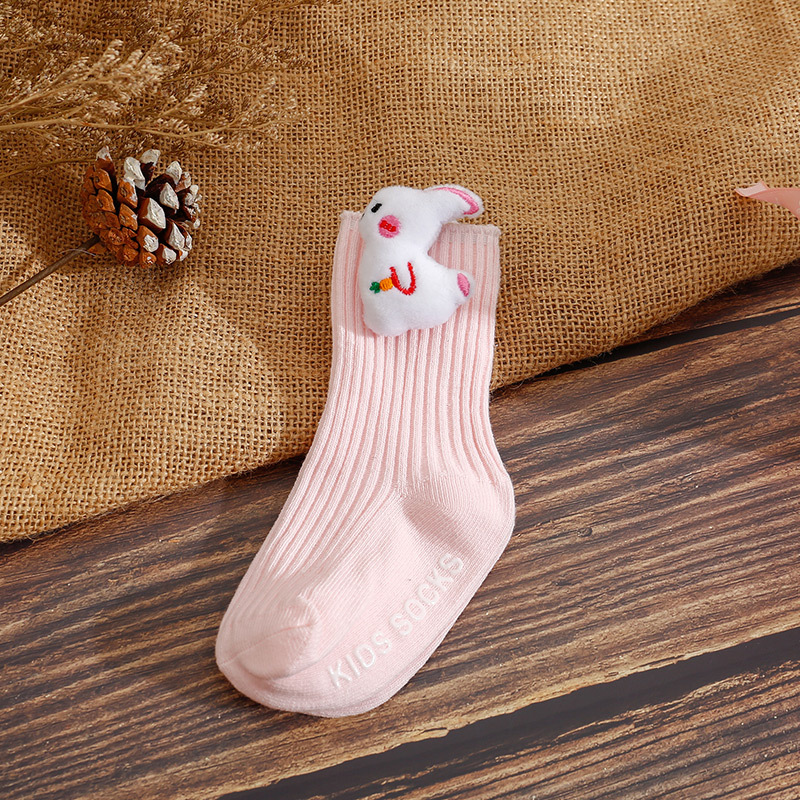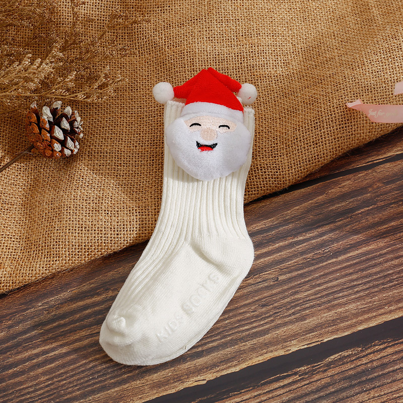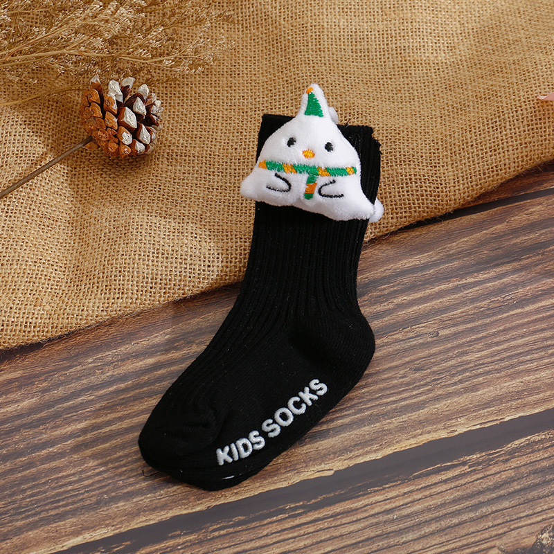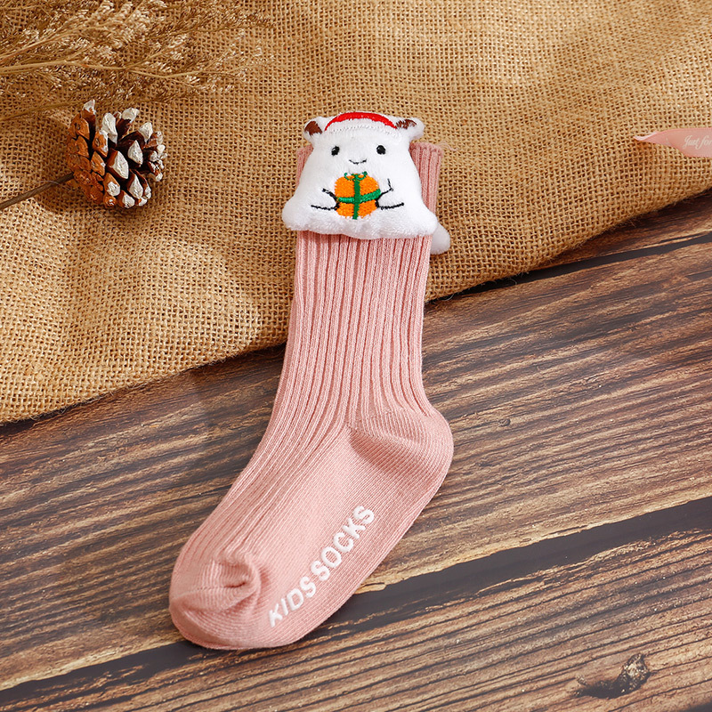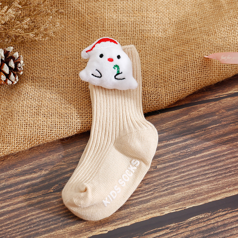 2024 크리스마스 아기 미끄럼 방지 바닥 양말 단색 어린이 중간 길이 양말 아기 양말 만화 INS 인기 양말