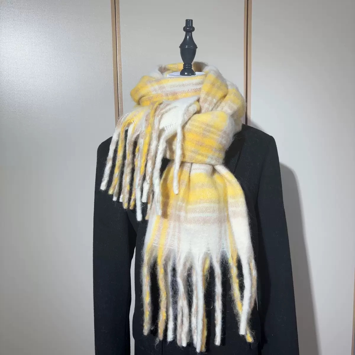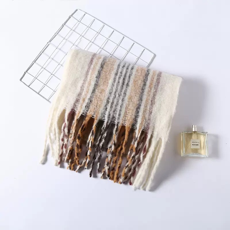 격자 무늬 술 스카프 여성의 가을과 겨울 무지개 유럽과 미국 브랜드 색상 매칭 모조 캐시미어 모헤어 숄 두꺼운 스카프스토어 가기