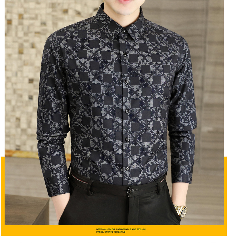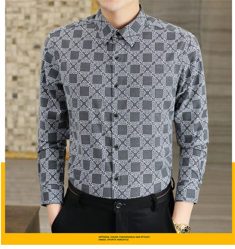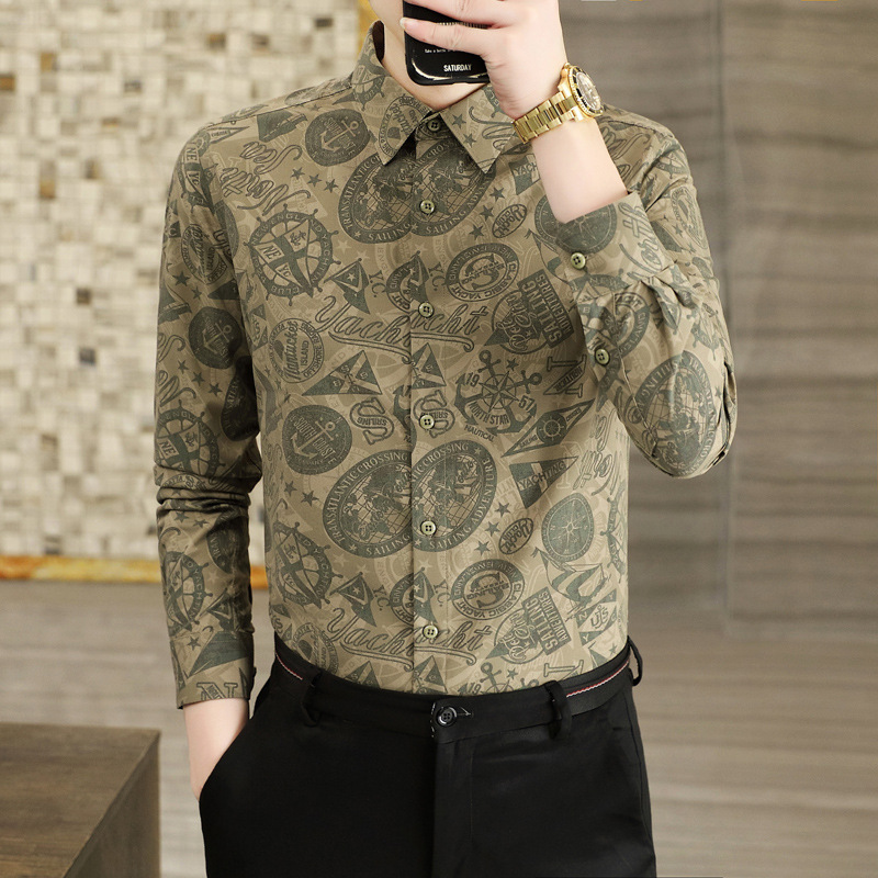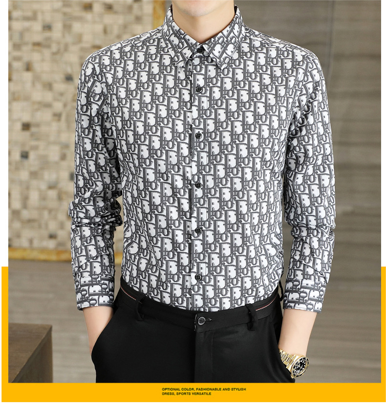 2022 새로운 젊은 남성 조명 비즈니스 디지털 인쇄 긴팔 셔츠 유행 남성 의류 8865