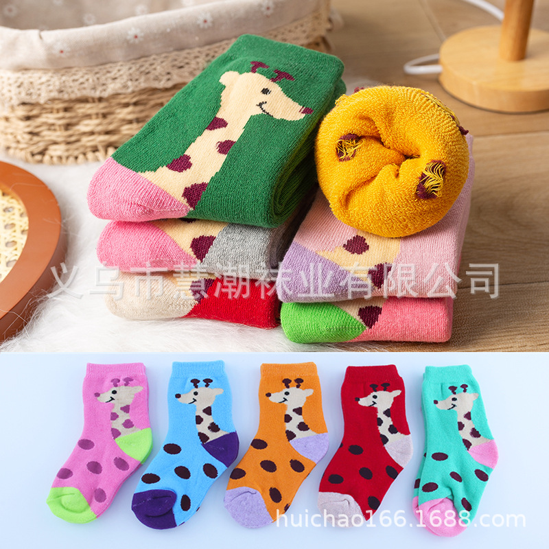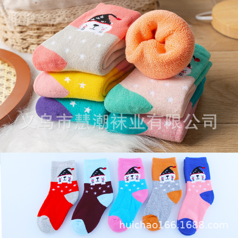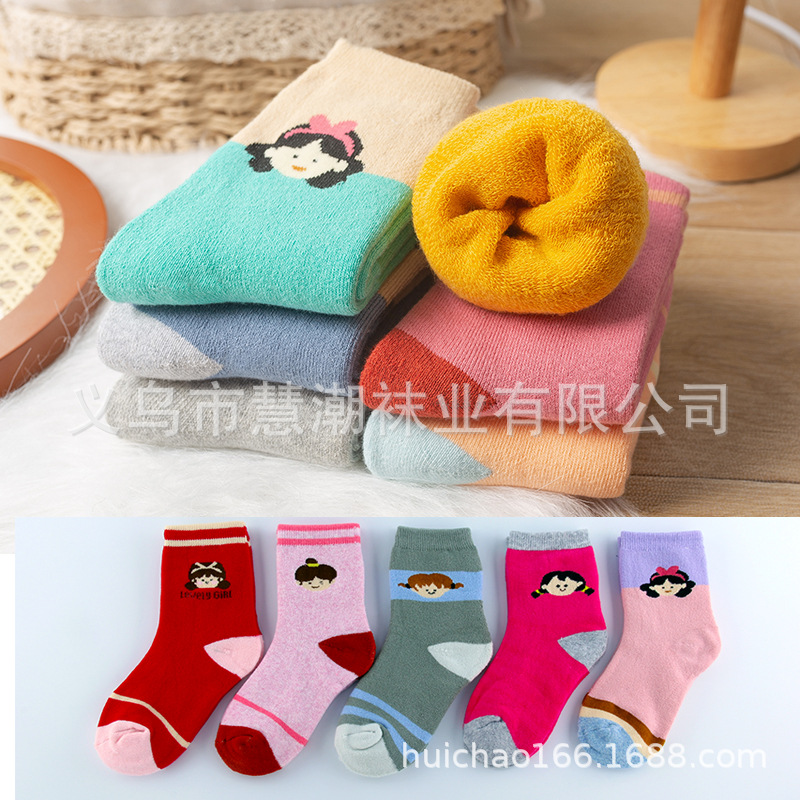 어린이 양말 겨울 기모 두꺼운 따뜻한 테리 양말 만화 수건 양말 소녀의 중간 종아리 양말 학생 바닥 양말