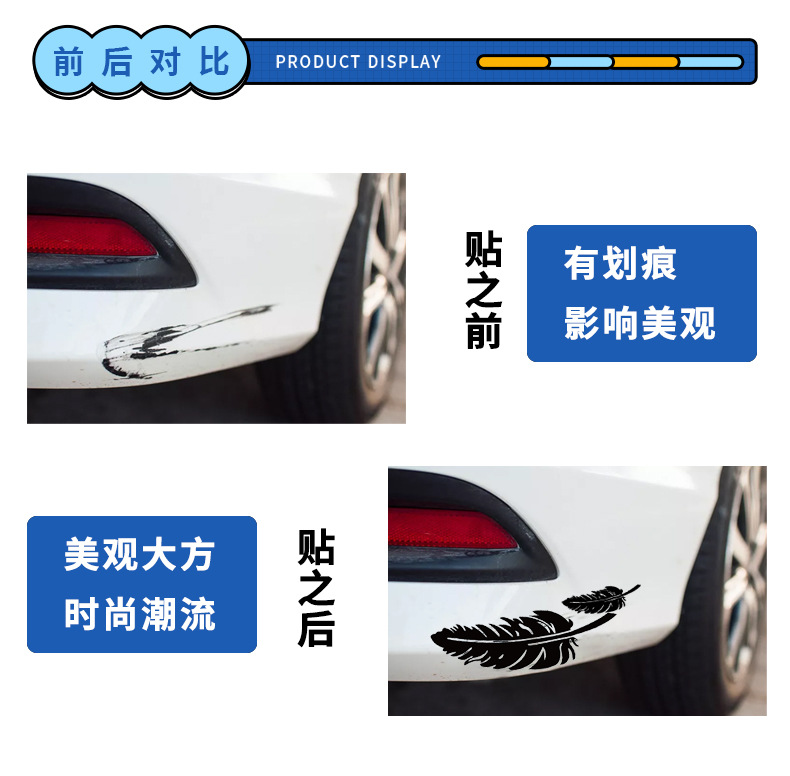 개인화 된 창조적 인 자동차 스티커 깃털 잎 몸 수정 반사 자동차 스티커 전기 자동차 장식 커버 스크래치 스티커스토어 가기