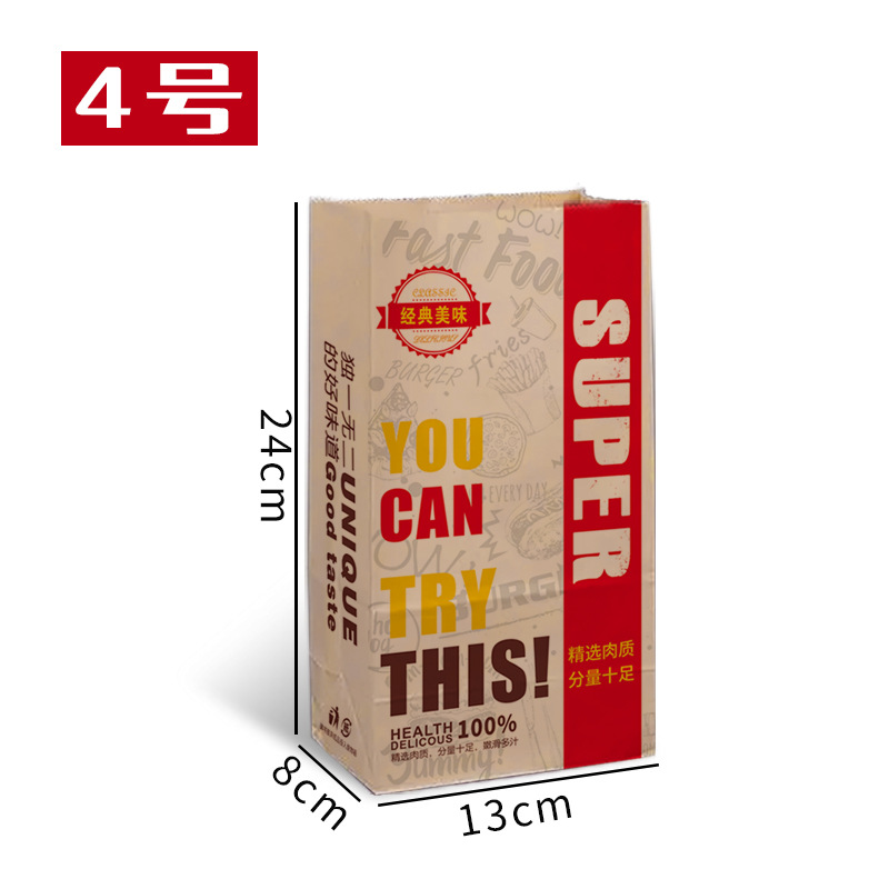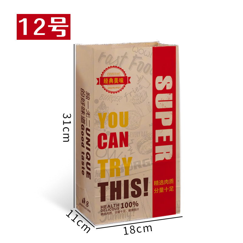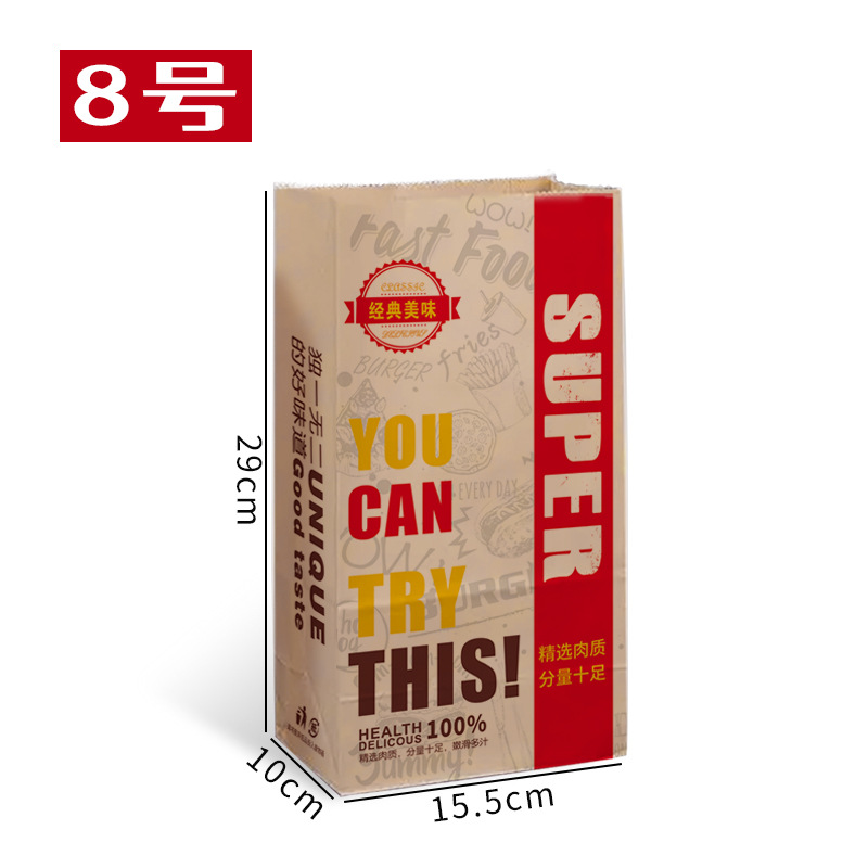 크래프트 종이 가방 일회용 프라이드 치킨 함부르크 테이크 아웃 스퀘어 베이스 베글 백 토스트 빵 종이 가방 분해 가능한 재고