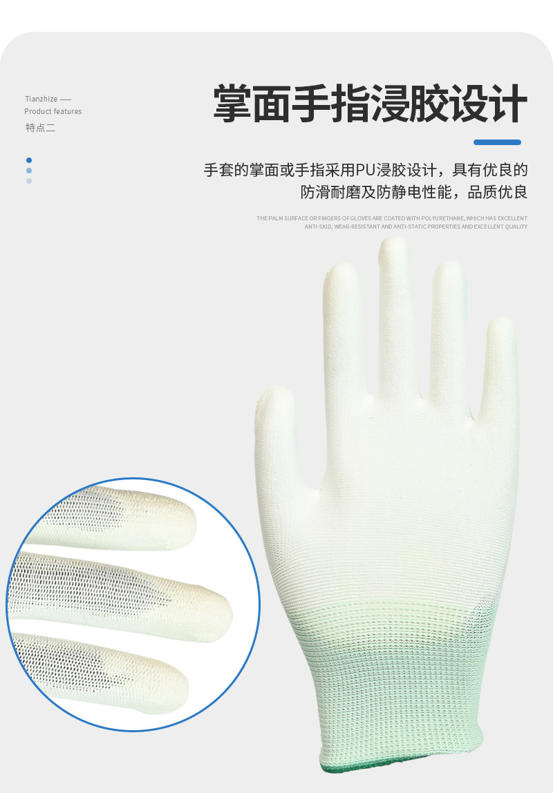 PU 팜 코팅 장갑 접착제 미끄럼 방지 장갑 전자 먼지 방지 정전기 방지 노동 장갑 PU 손가락 코팅 장갑 도매스토어 가기