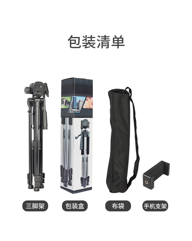 • 1.5 m 삼각대 + 가방 + E-클립 + 컬러 박스