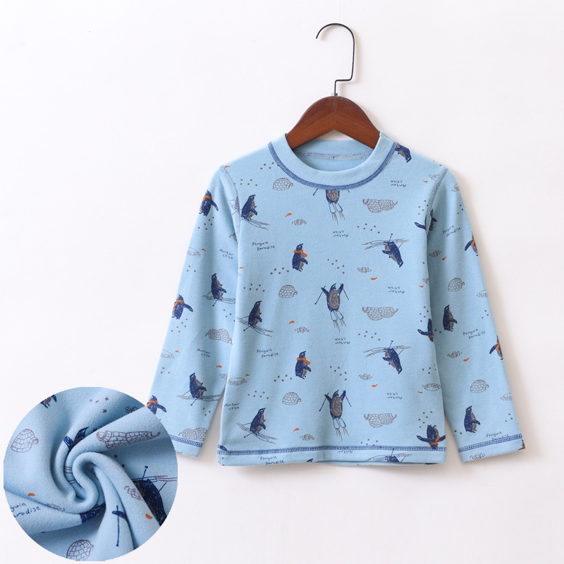양면 Zhende 벨벳 어린이 따뜻한 기모 두꺼운 기본 탑 가을과 겨울 소년 긴 소매 난방 속옷 가을 옷스토어 가기