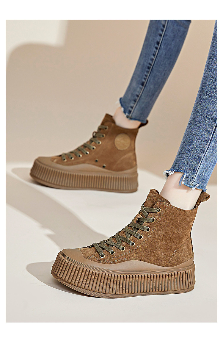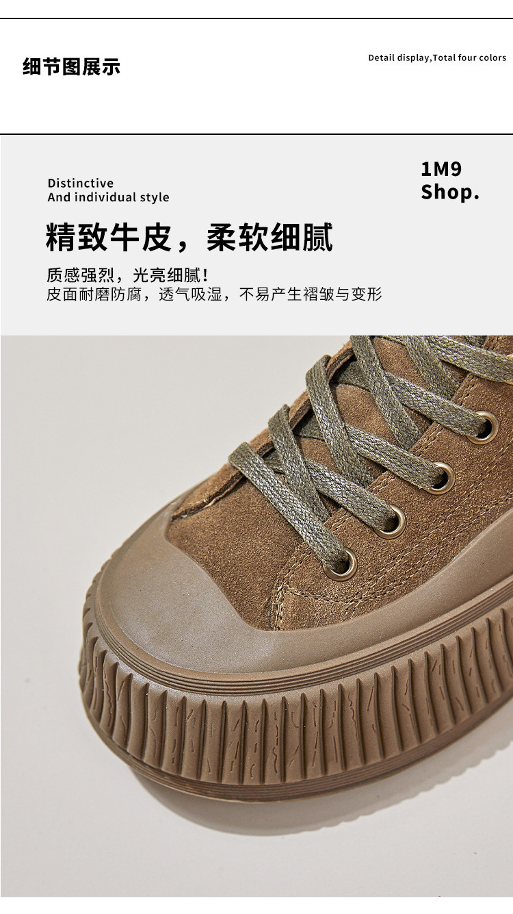 하이탑 레트로 화이트 슈즈 여성용 2025 봄 신상 두꺼운 밑창 비스킷 슈즈 두꺼운 밑창 단화 여성 캐주얼 천연 가죽 여성화스토어 가기