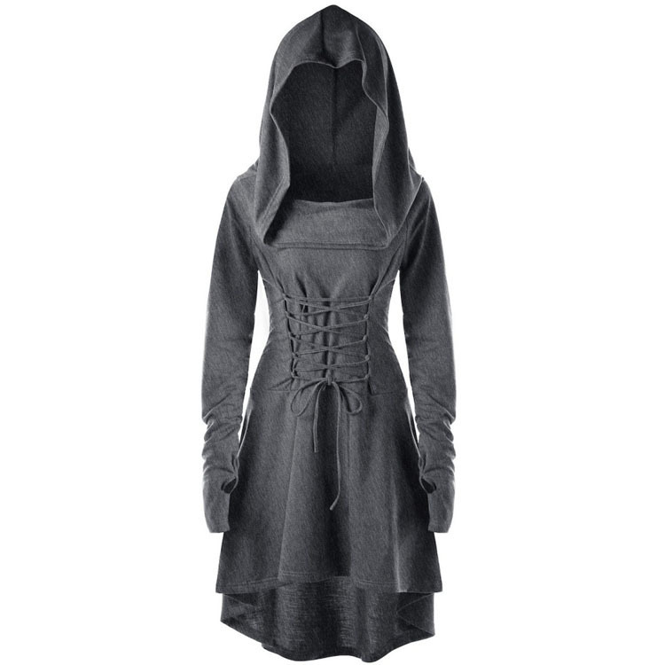Ebay亚马逊欧美外贸爆款女士纯色节日表演服长袖连帽绑带连衣裙