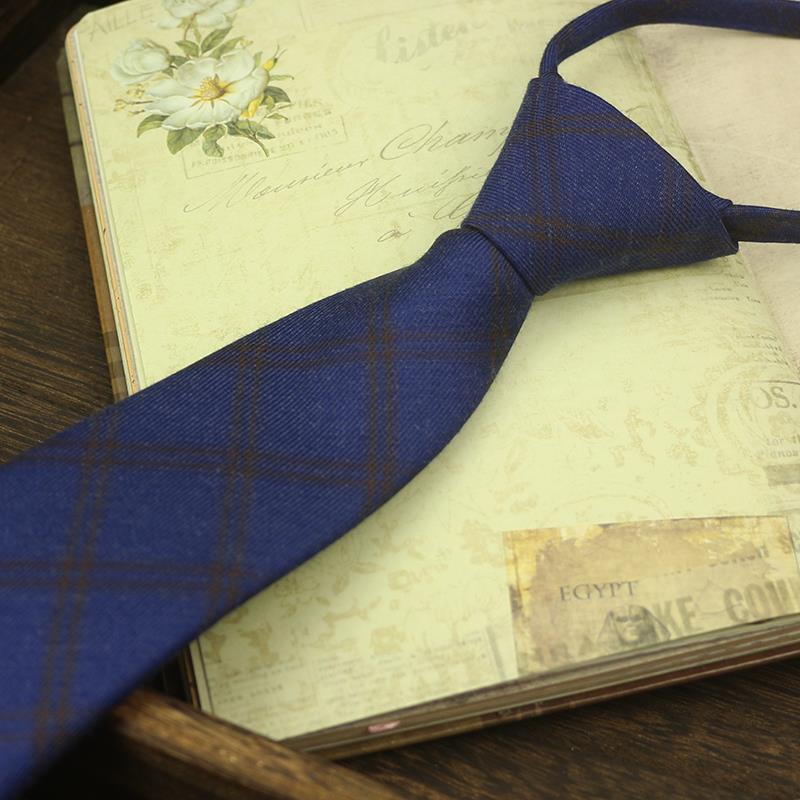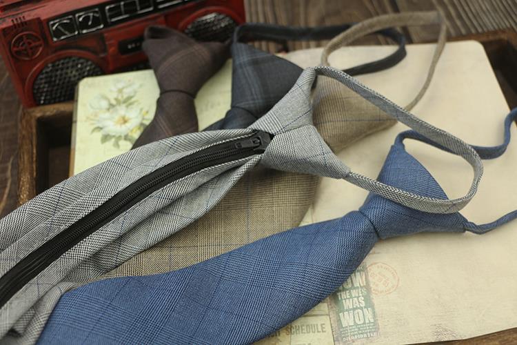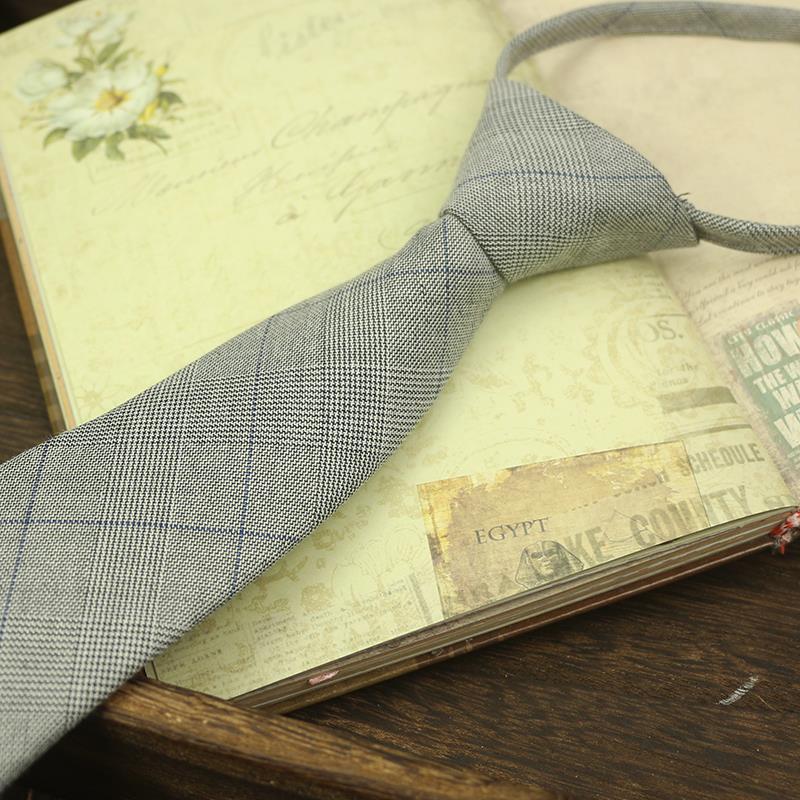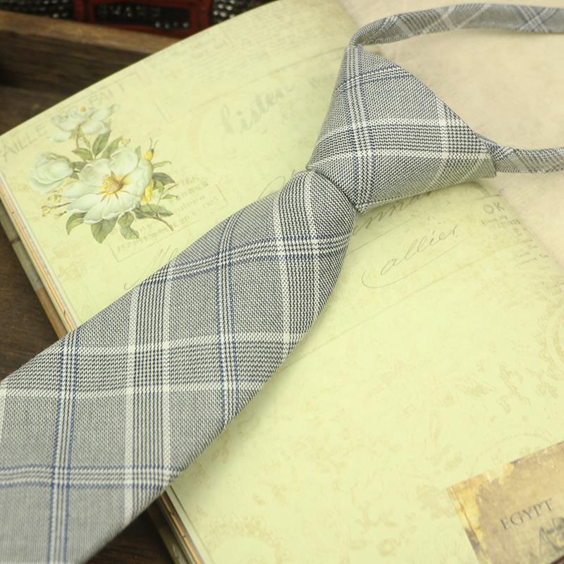 넥타이 남자의 한국 스타일 캐주얼 지퍼 7cm 영국 격자 무늬 그레이 블루 비즈니스 원피스 전문 모든 경기 쉽게 당겨스토어 가기