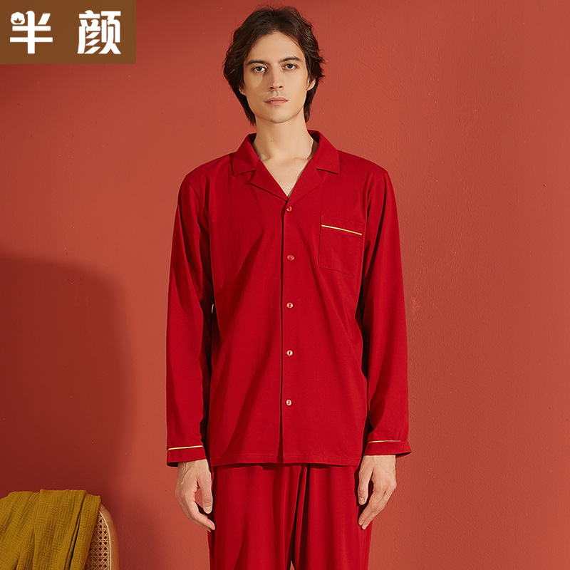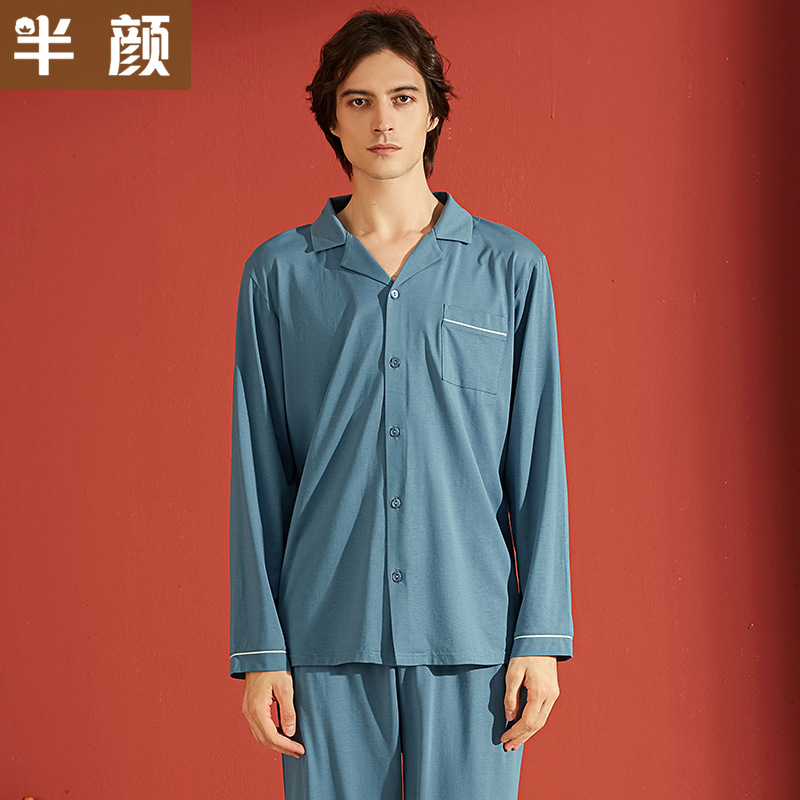 반 얀 가을 새로운 제인 유럽 스타일 남자의 옷깃 단색 편안한 Lanjing 모달 면 플러스 사이즈 잠옷 가정 옷