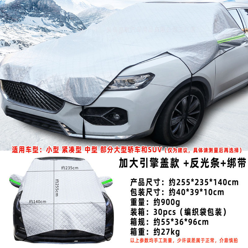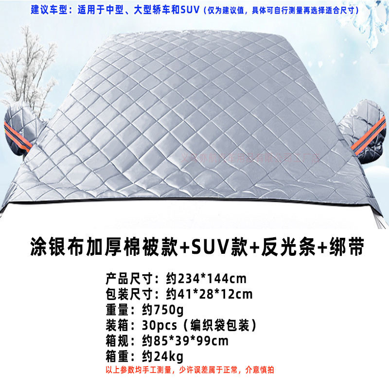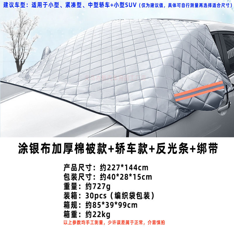 提示:本品为全手工缝制,尺寸偶尔误差3cm是属于正常的,我方生产时也会尽力控制住尺寸,整件包装都是编织袋包装,出口需要纸箱包装请联系客服,另外雪挡费专车专用款式,上面建议的适用车型仅为本司建议值,非绝对,特别是零售客户请自行测量所需尺寸再选择接近的尺寸,特别提示:买大不买小,大了可以凑合用,小了就不能用。